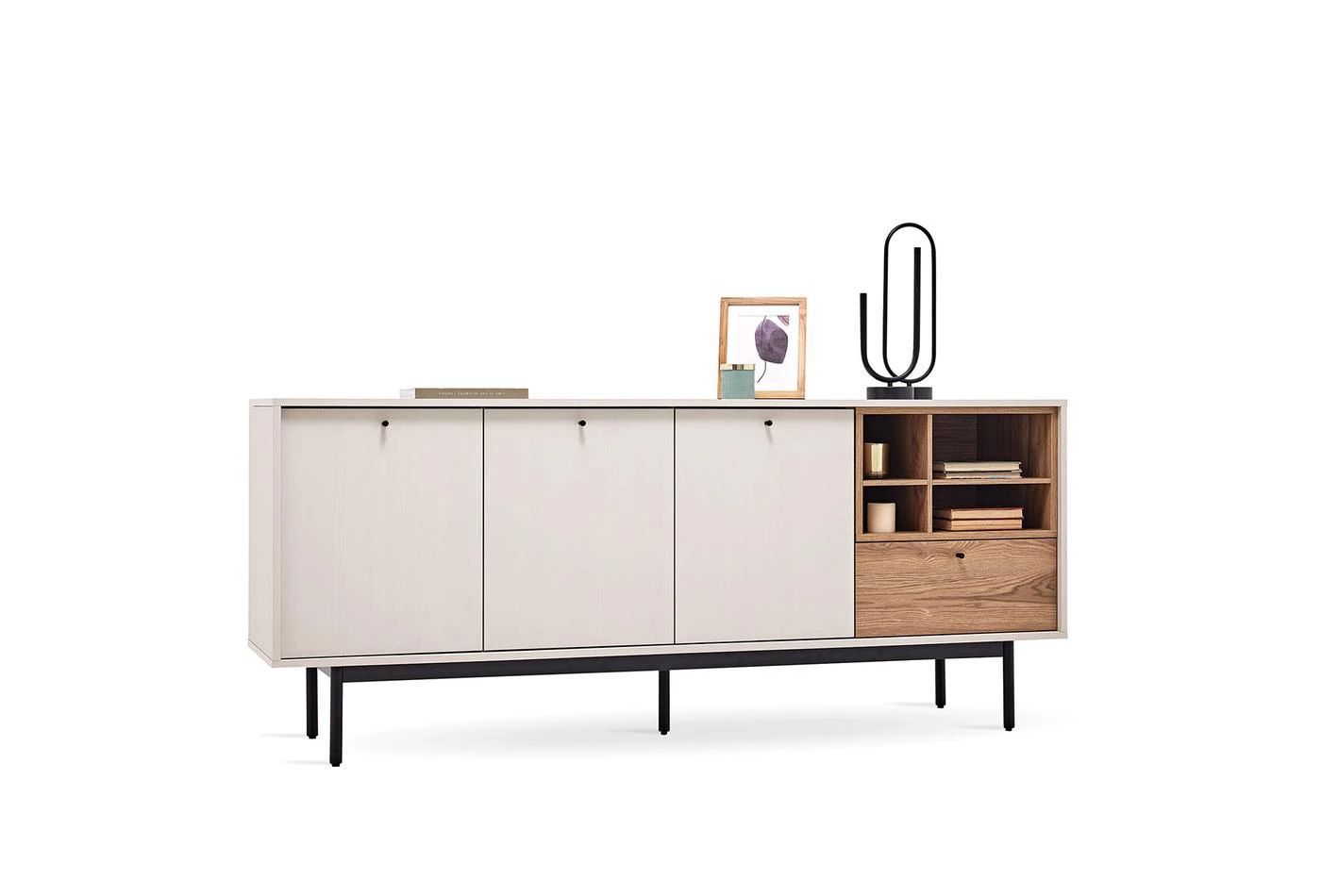 Обединява жилищните пространства с модерен индустриален стил, където естествеността се откроява. Допълвайки комбинацията от цвят крем и светъл орех с метални матово черни дръжки, придобива топъл външен вид, който е съвместим с пространствата.