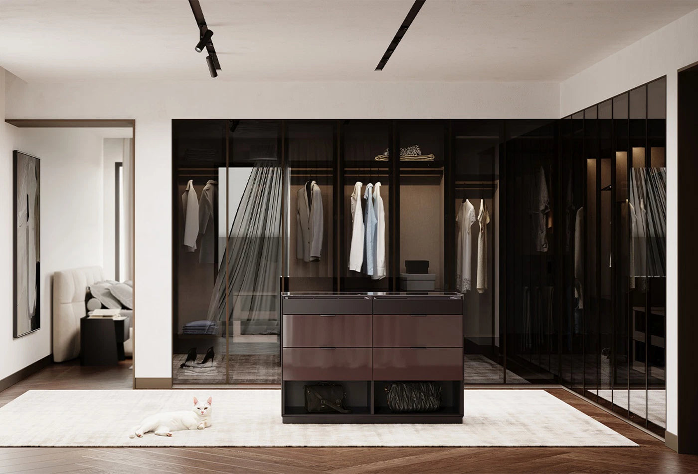 Гардеробната система Odena съчетава елегантен и функционален дизайн, като предлага решения за всяка нужда чрез персонализируеми вътрешни конфигурации, реализирани благодарение на отличителните детайли на Enza.