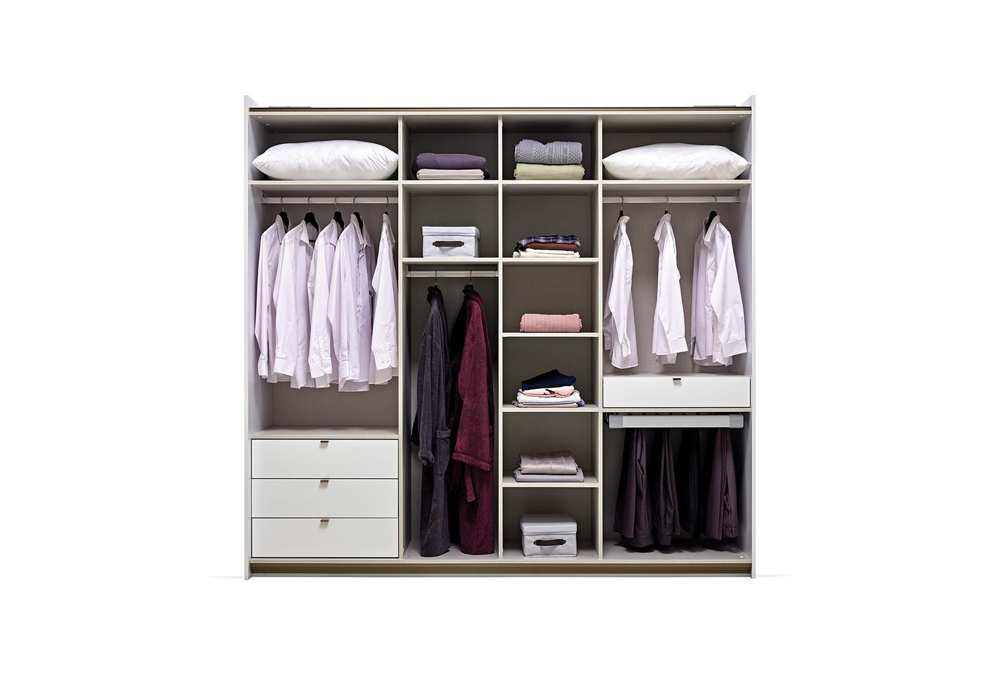 Подчертавайки монохромния стил, който често се предпочита в декорацията на дома, серията подчертава елегантността с дългите си лъскави метални дръжки в цвят бронз и ярко бяла повърхност с огледало в естествен цвят и обещава функционална употреба с големите си места за съхранение.