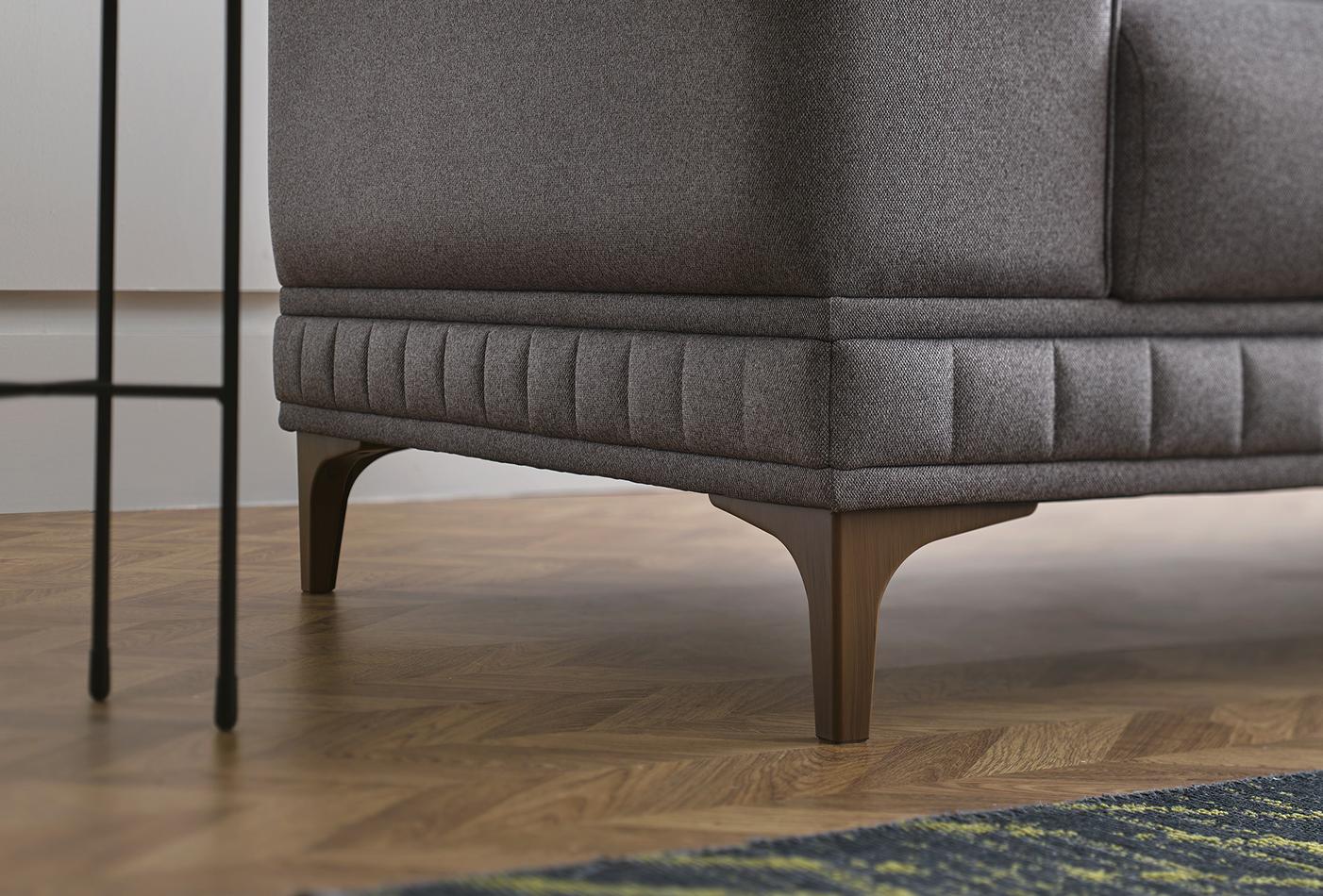 Давайки приоритет на комфорта със своята ергономична структура, внася семпла и елегантна визия в жилищните пространства. Докато високата удобна опора за седалка и облегалка предлага максимален комфорт, увеличава своята издръжливост с дървена конструкция с метална опора. Структурата с високи крака, специално проектирана да предлага удобно и лесно изживяване при почистване, има 3 различни цветови алтернативи на краката - орех, дъб и антрацит.