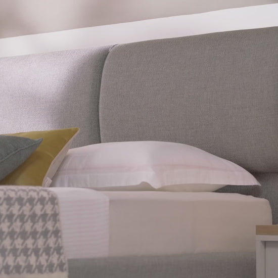 Модерните изчистени линии са откриват и в спалнята на серия Loreto. Леглото е тапицирано в тъкана дамаска и разполага с голямо складово пространство. Базата е елегантно подчертана с черни метални крачета в индустриален стил. Опция за избор между няколко цвята.