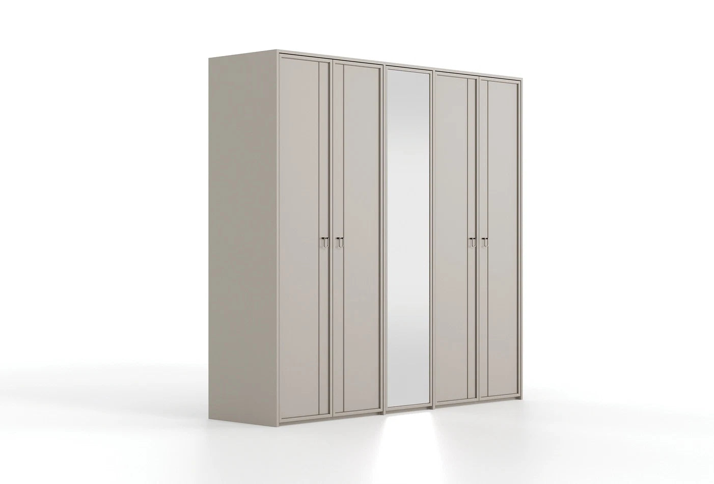 Гардероб HERA представлява идеалния синтез между елегантност и функционалност. Успокояващият камъчен нюанс на корпуса се хармонира перфектно с естествените огледални детайли, а луксозните метални дръжки в бронзов цвятдобавят съвременна изтънченост.