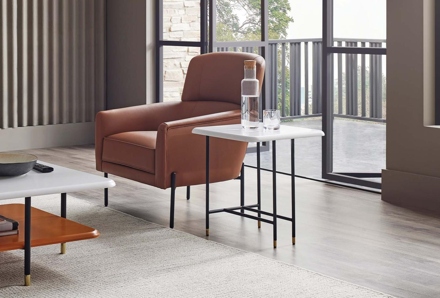 Комбинирайки използването на цветове, които създават живи и стилни контрасти с модерни линии, серията дава живот на изисканите пространства със своите удивителни дизайнерски детайли. Добавя елегантна интерпретация към дизайна си със своята черна метална форма на крака със златни обувчици.