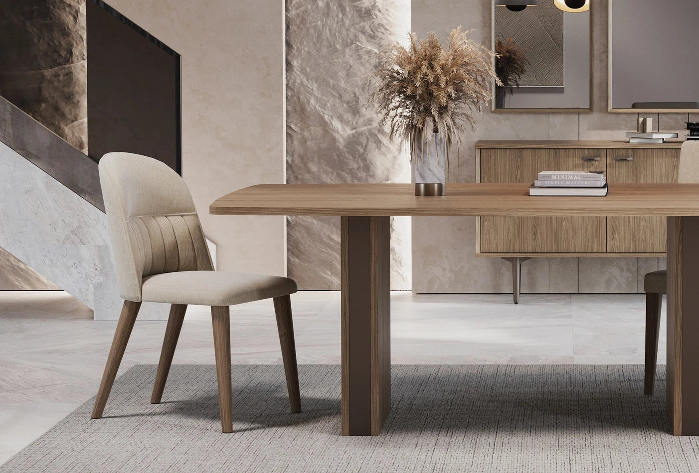 Трапезен стол PALOMA се отличава с естествените си дървени крака, предназначени да придадат елегантна атмосфера на всяко жилищно пространство, съчетава естествена елегантност и комфорт.