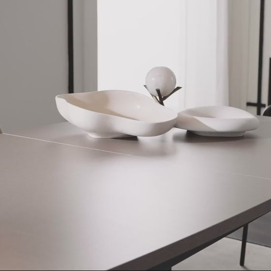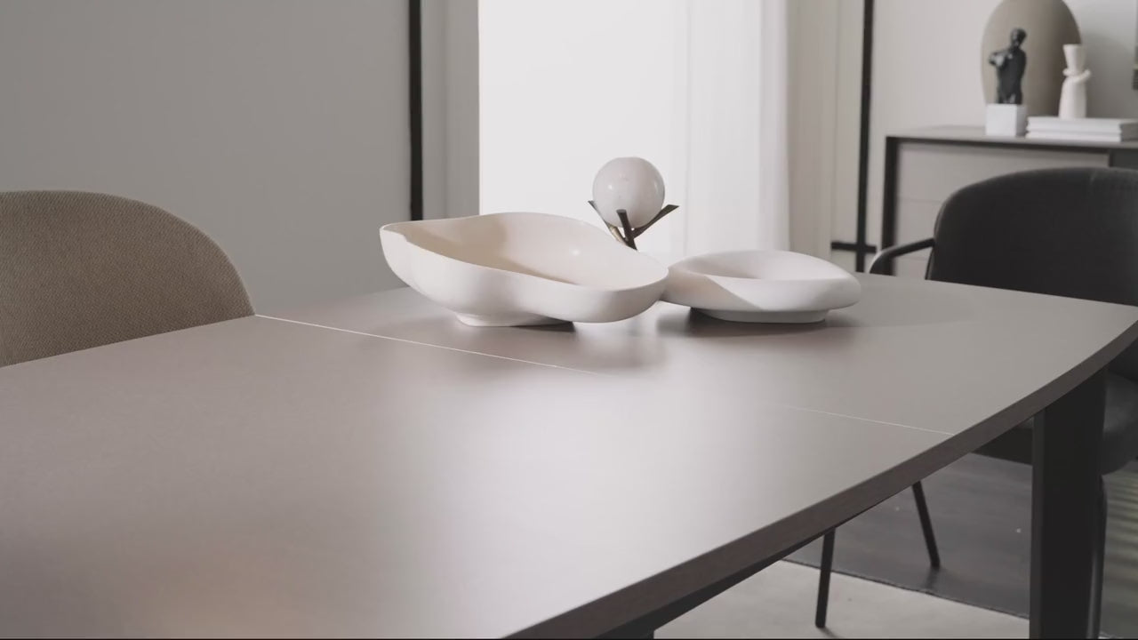 Добавя съвременен щрих към декорацията със своята специална елипсовидна форма и дървени крака с метални ефекти.