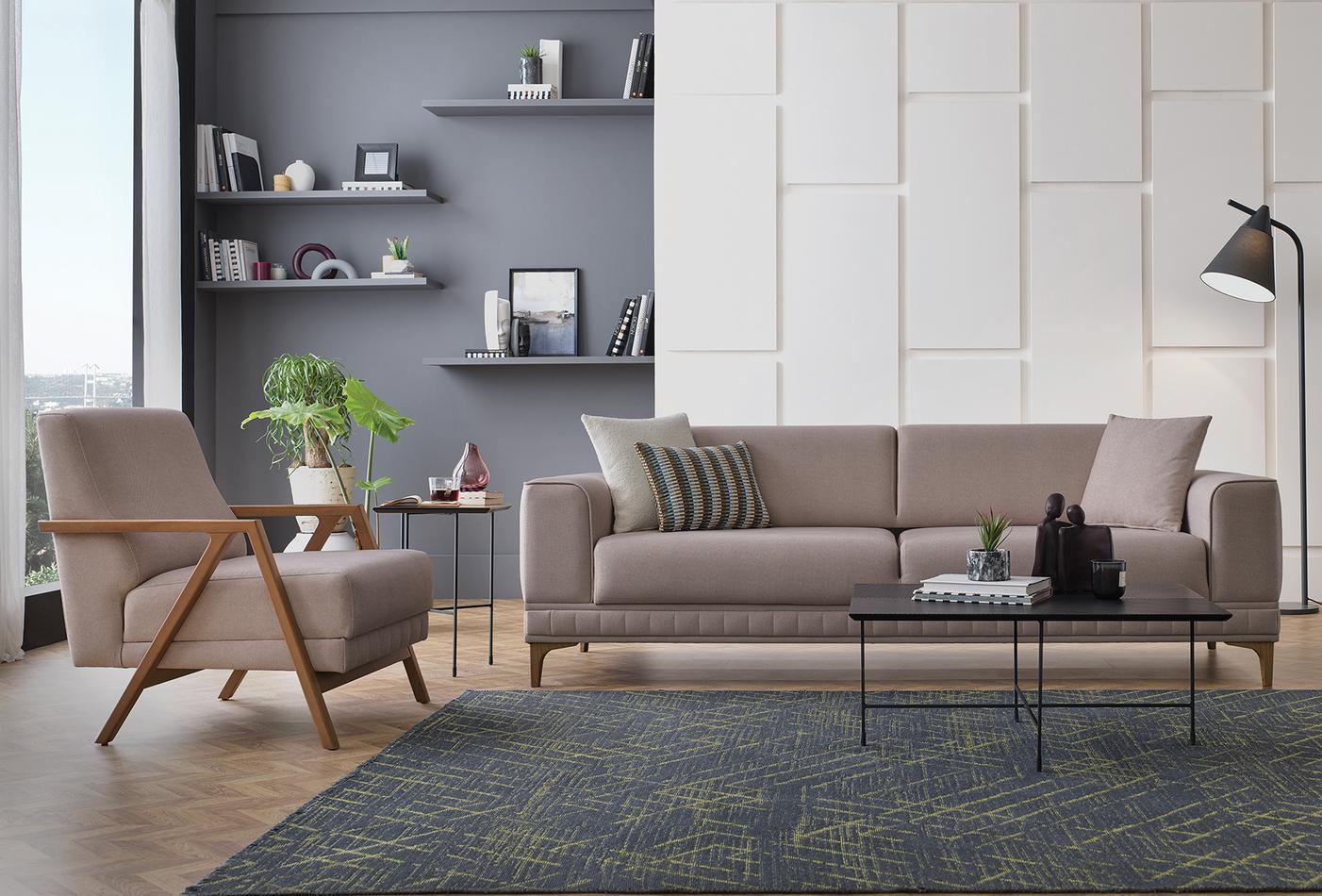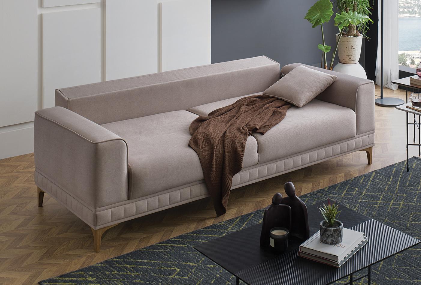 Със своята ергономична структура, придава семпъл и елегантен вид на жилищните пространства, като дава приоритет на комфорта. Докато високата удобна опора за седалка и облегалка предлага максимален комфорт, увеличава своята издръжливост с дървена конструкция с метална опора. Улеснява настаняването на гости със специалния си механизъм, който позволява лесното му превръщане в легло. Структурата с високи крака, специално проектирана да предлага удобно и лесно изживяване при почистване, има 3 различни цветови алтернативи на краката - орех, дъб и антрацит.