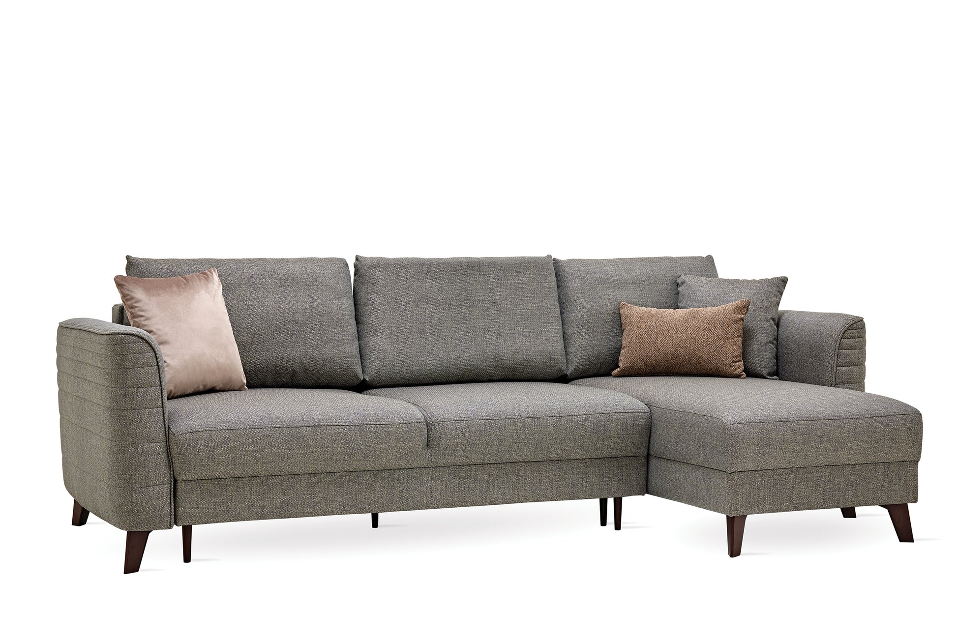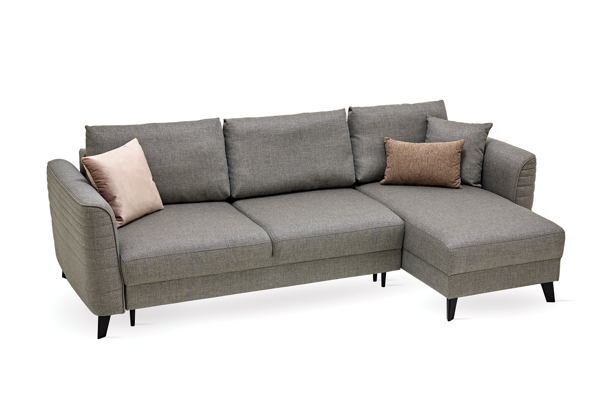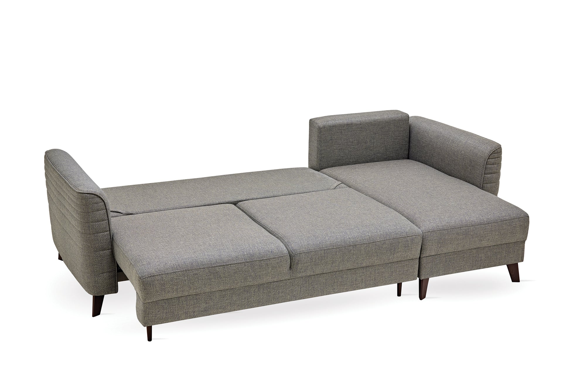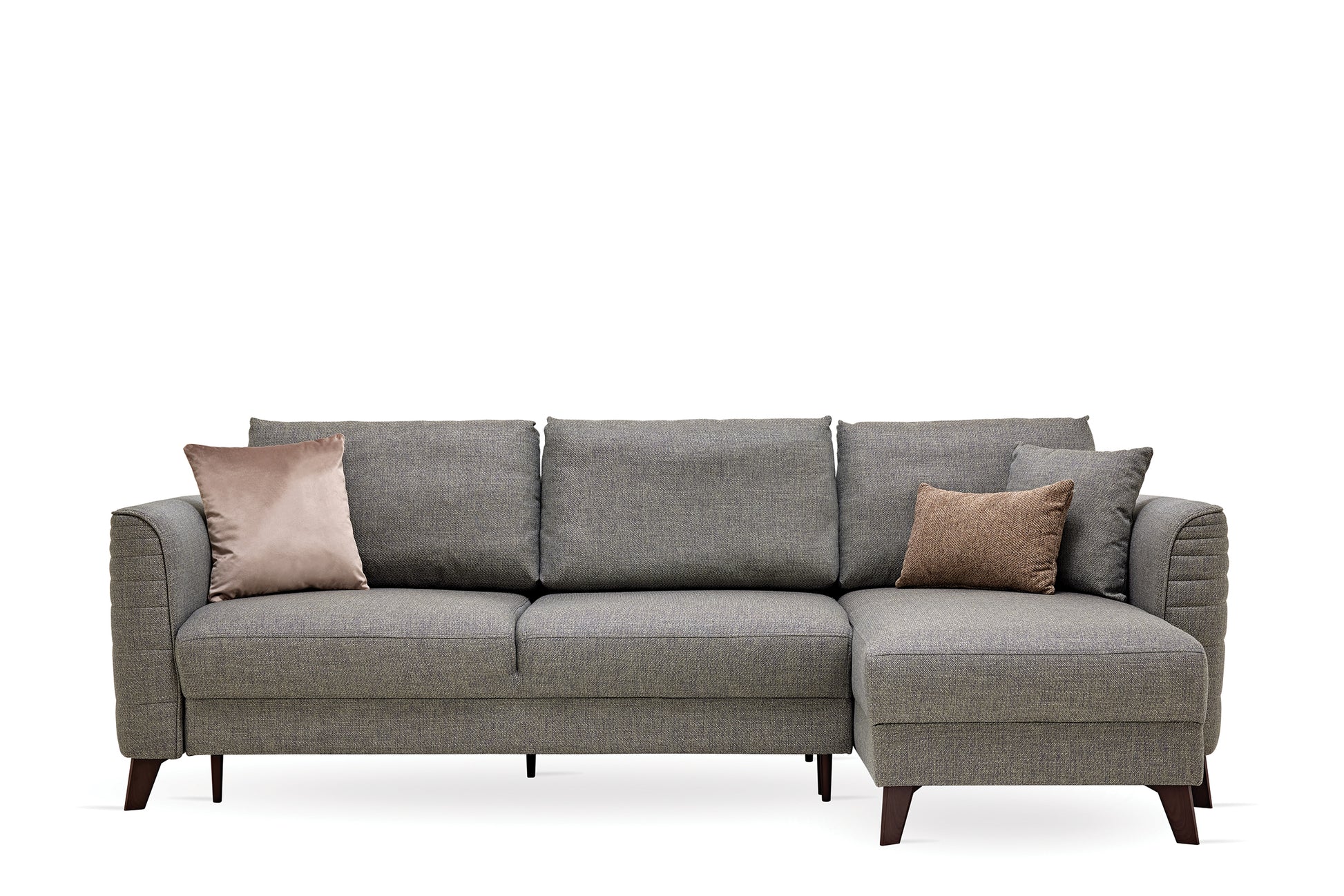 Ъглов диван Grace съчетава модерен стил на дизайн с многостранни функционални характеристики внасяйки стилна и практична интерпретация на концепцията за комфорт. Докато добавя стилна нотка към структурата на седалката, която дава приоритет на комфорта. Oтговаря на различни декоративни предпочитания с опции за цвят на краката - орех и черен.