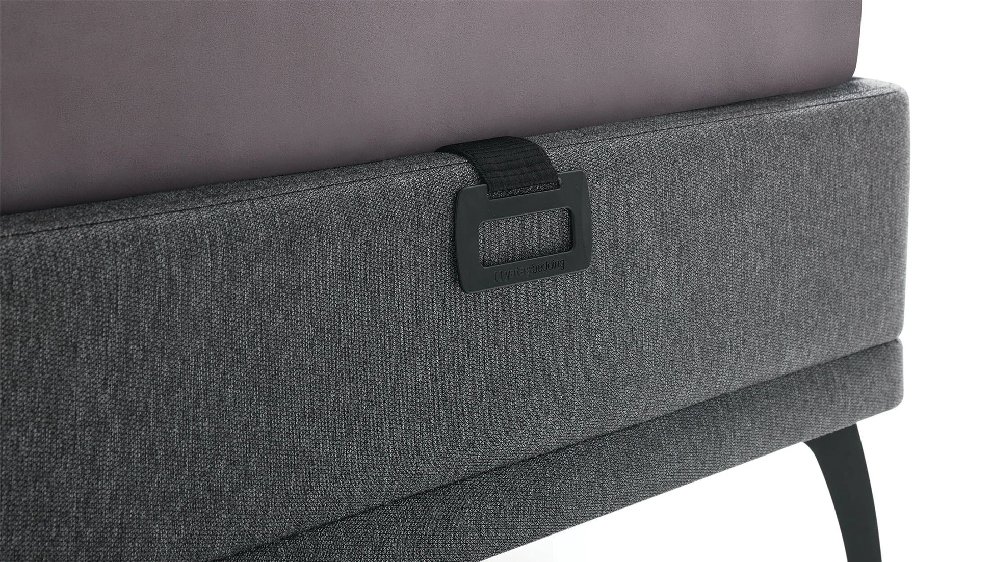 Базата за легло Black Ice има стилен външен вид със семплия си дизайн, съвместим с таблата и високите крака от черен метал. Има функционална употреба благодарение на големия си вътрешен обем. С широката си гама от материи и цветови варианти тя предоставя богат избор за различните спални.