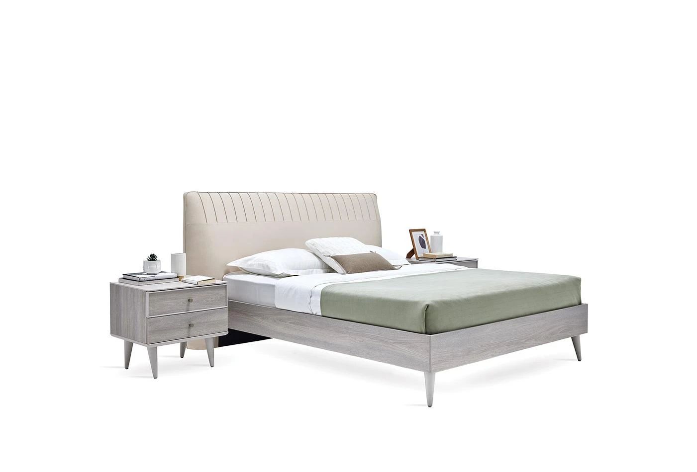 Благодарение на покритата с плат рамка на леглото и удобната структура предлага качествен сън и същевременно обогатява декорацията на спалнята. Докато отразява простата елегантност на естествеността със своята цветова комбинация от светъл дъб и светло бежово, апликацията с фитил върху таблата помага да се добави уникална атмосфера към пространството с иновативни щрихи.