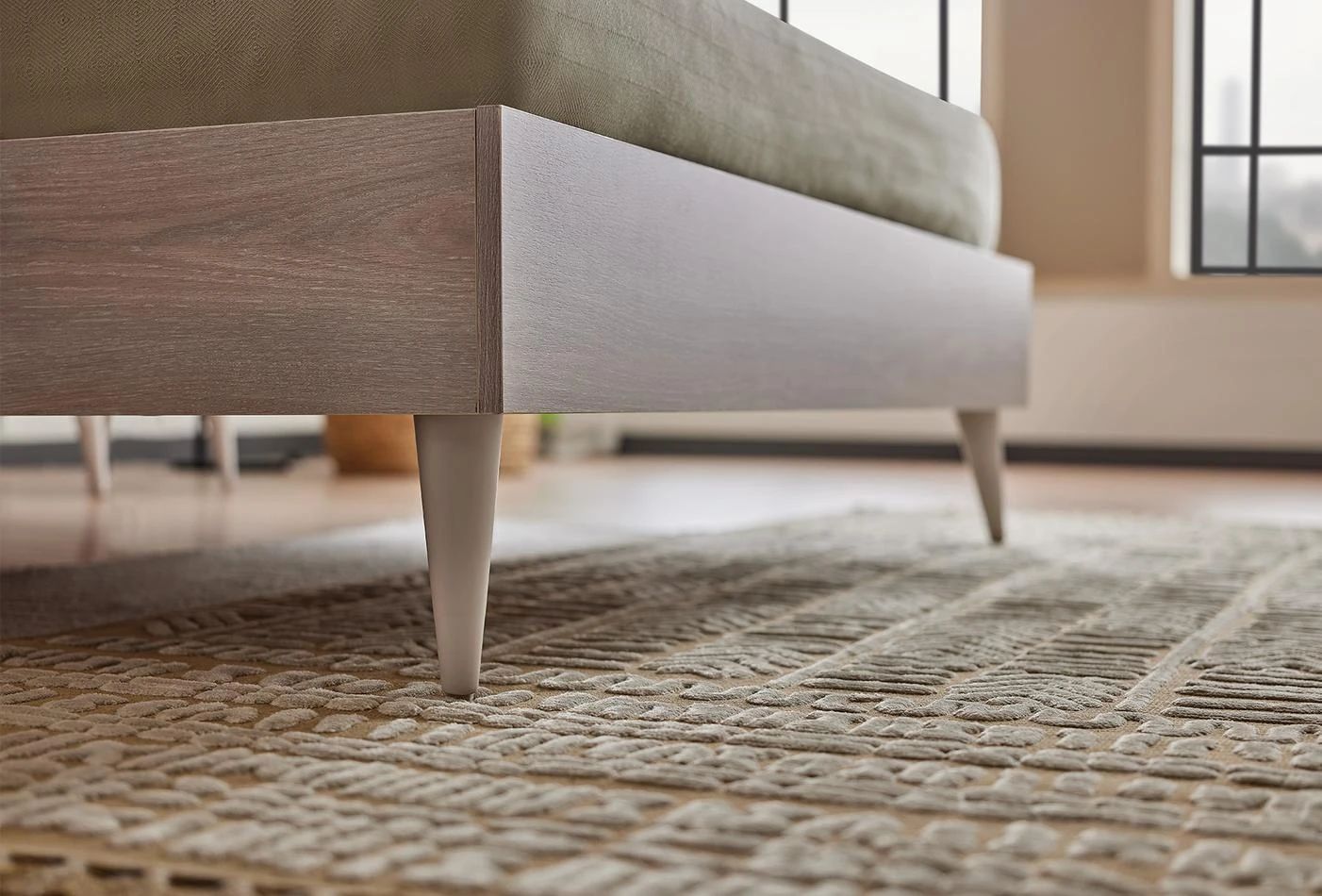 Благодарение на покритата с плат рамка на леглото и удобната структура предлага качествен сън и същевременно обогатява декорацията на спалнята. Докато отразява простата елегантност на естествеността със своята цветова комбинация от светъл дъб и светло бежово, апликацията с фитил върху таблата помага да се добави уникална атмосфера към пространството с иновативни щрихи.