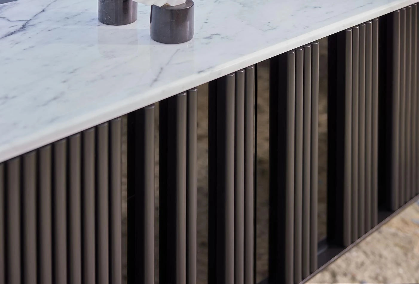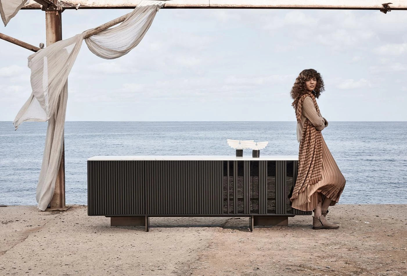 Бюфета Osaka е от серията Visions 2023, предлагайки дизайнерско разнообразие с опция за плот от мрамор или MDF плот.