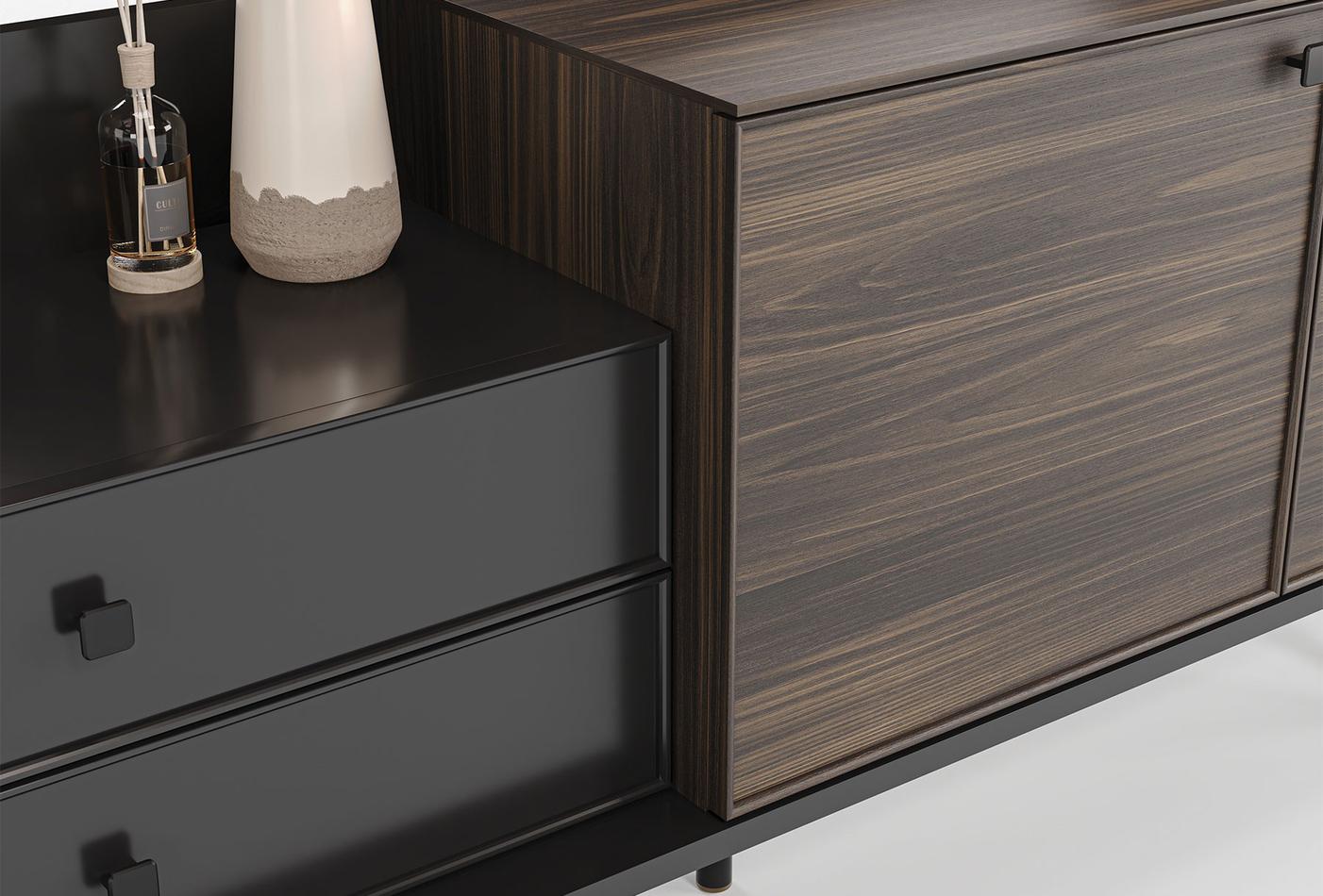 Проектиран в уникалната комбинация от тъмен орех и матово черно бюфетът Parma заема своето място в най-модерните жилищни пространства! Предлага подходящ външен вид за всяко пространство със своя съвременен дизайн, обещава дълготрайна употреба със здравата си конструкция.