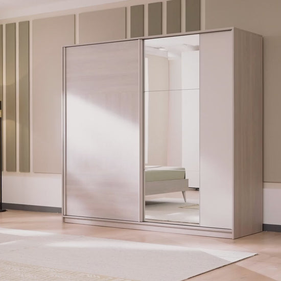 Приложението за огледало в естествен цвят, което е интегрирано с комбинацията от светъл дъб и светло бежово в дизайна му, добавя ярка и приятелска атмосфера към пространството, което използва в допълнение към своята функционалност. Отговаря на нуждите на организацията по най-добрия начин със своите места за съхранение, включително чекмедже.