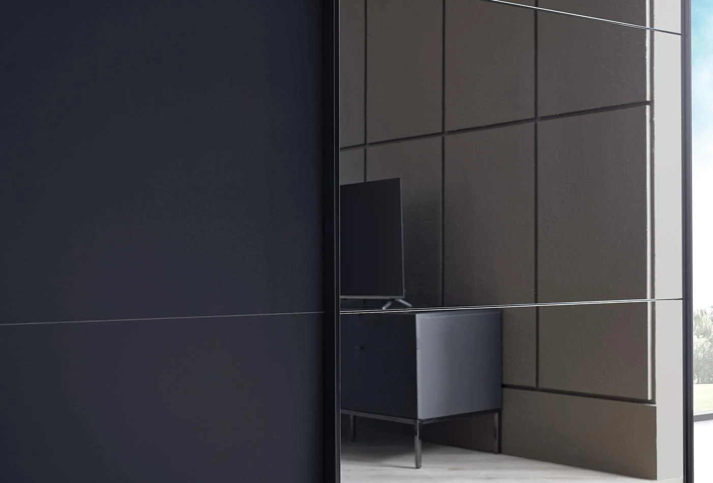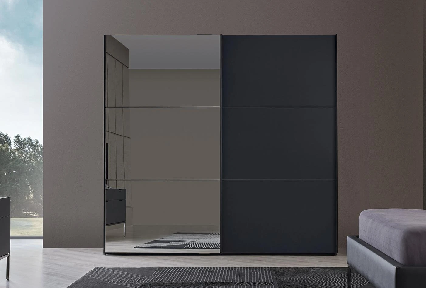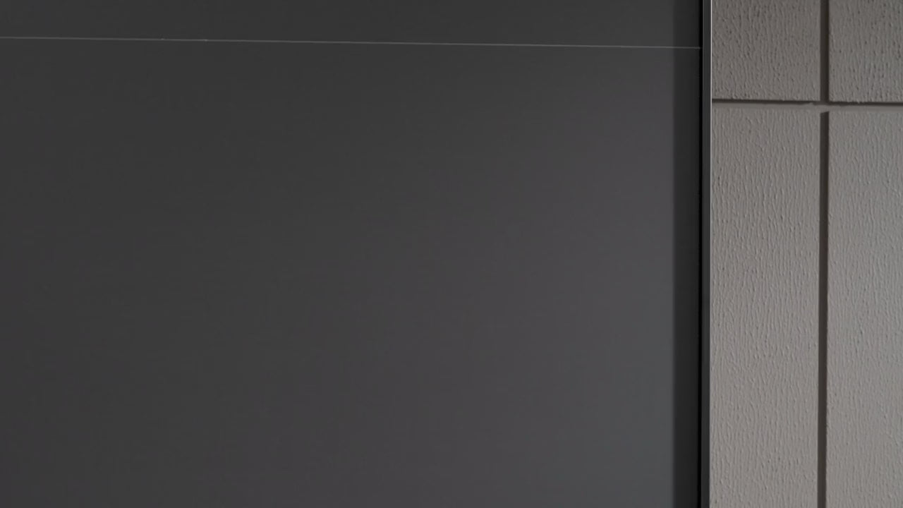 Подчертавайки монохромния стил, който често се предпочита в декорацията на дома, подчертава елегантността с дългите си лъскави дръжки от опушен метал и матова черна повърхност и обещава функционална употреба с големите си места за съхранение. Внесена система на панти със самозабавяне.
