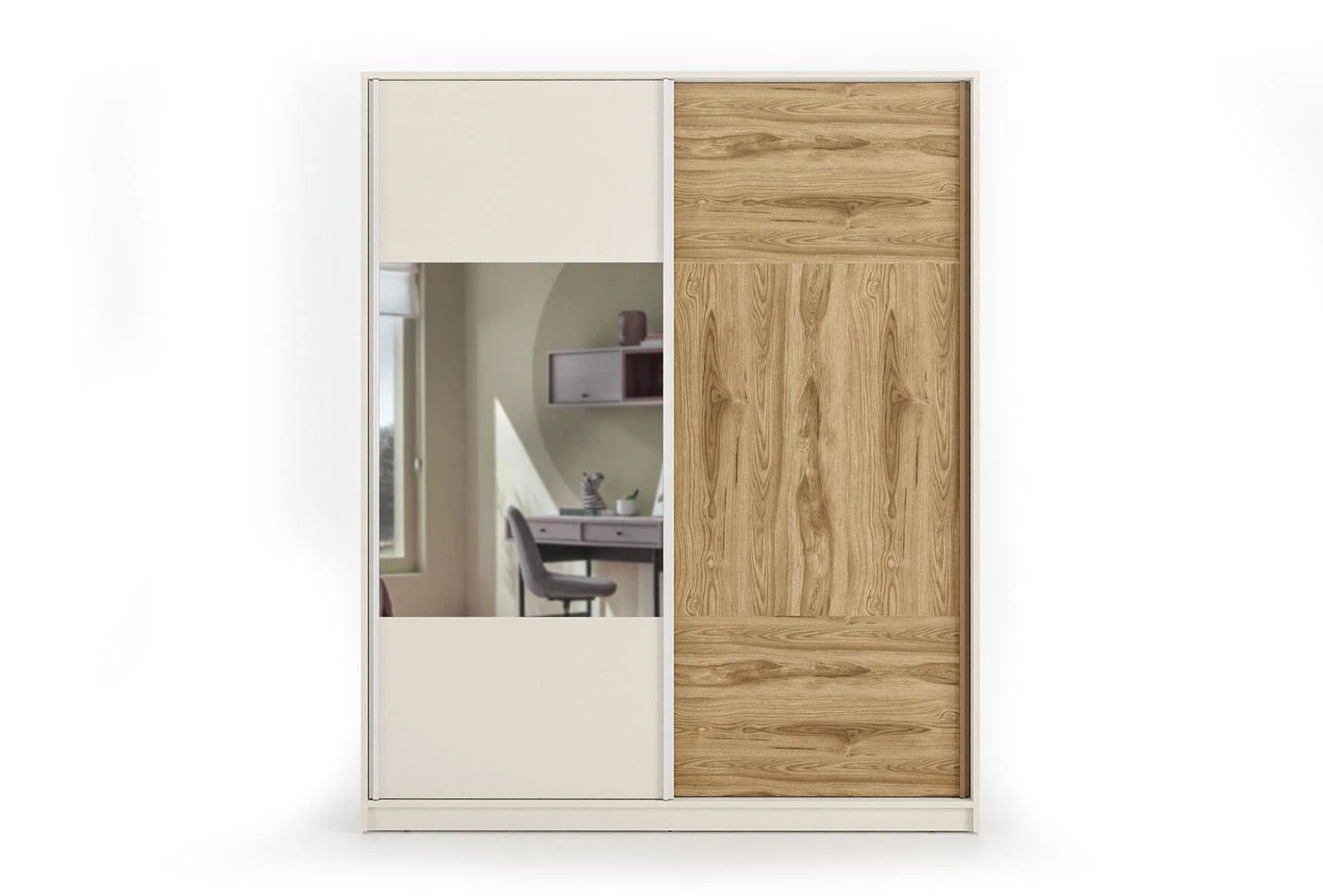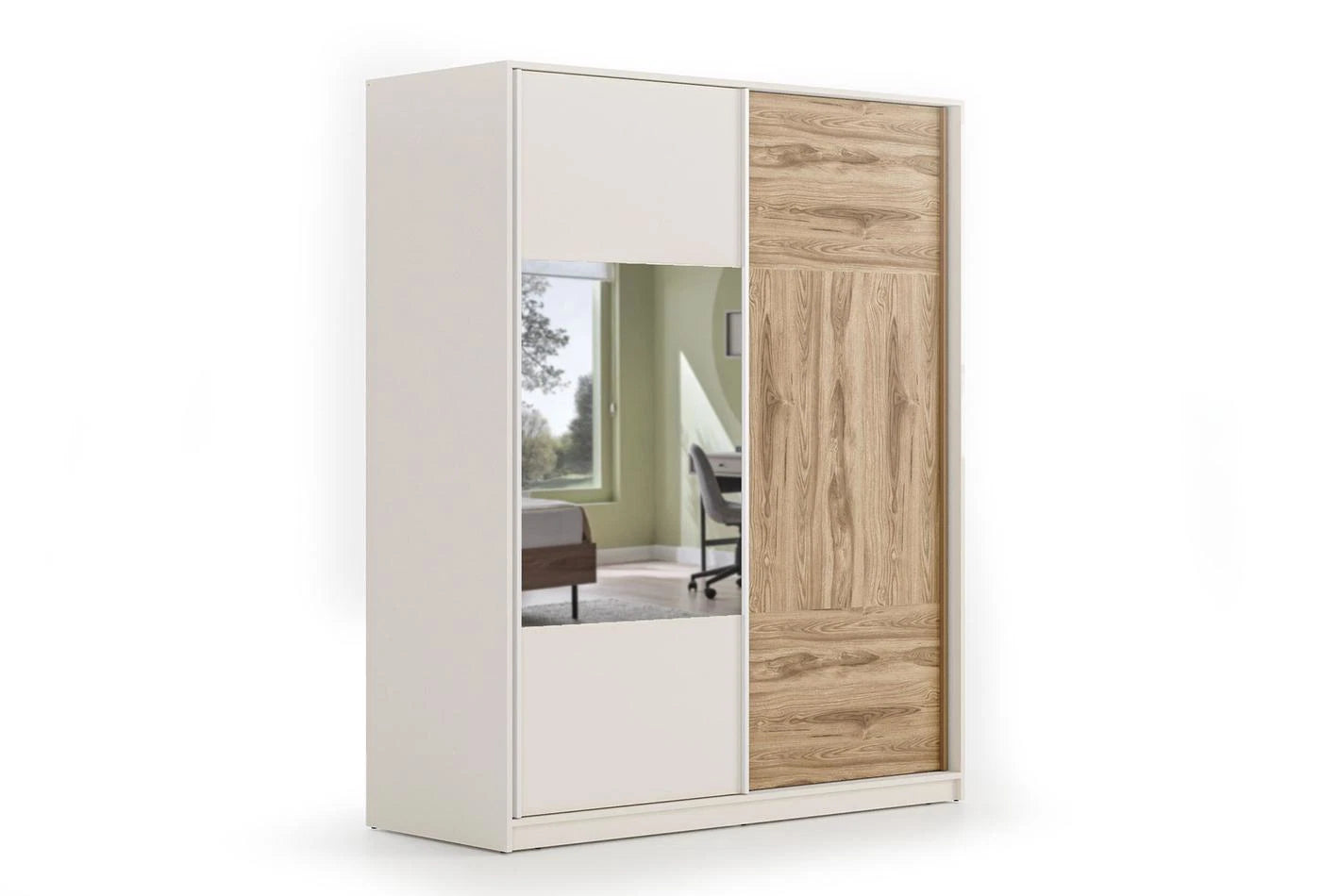 Гардероб с плъзгащи се врати Loreto, се отличава с динамичен дизайнерски подход, подчертава естествеността с цветовата си комбинация.