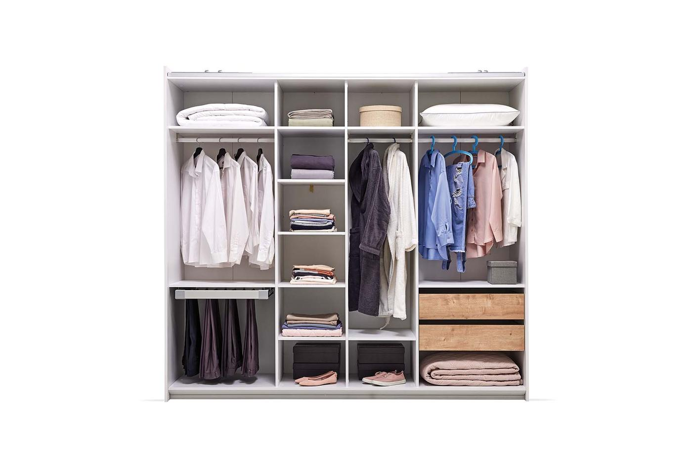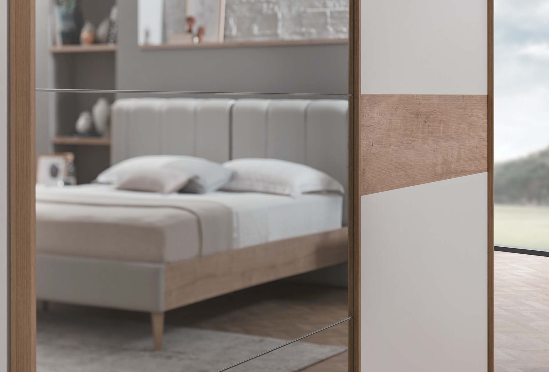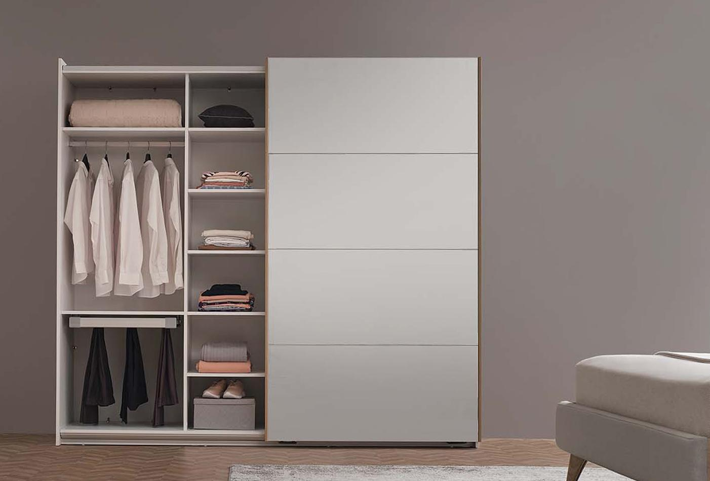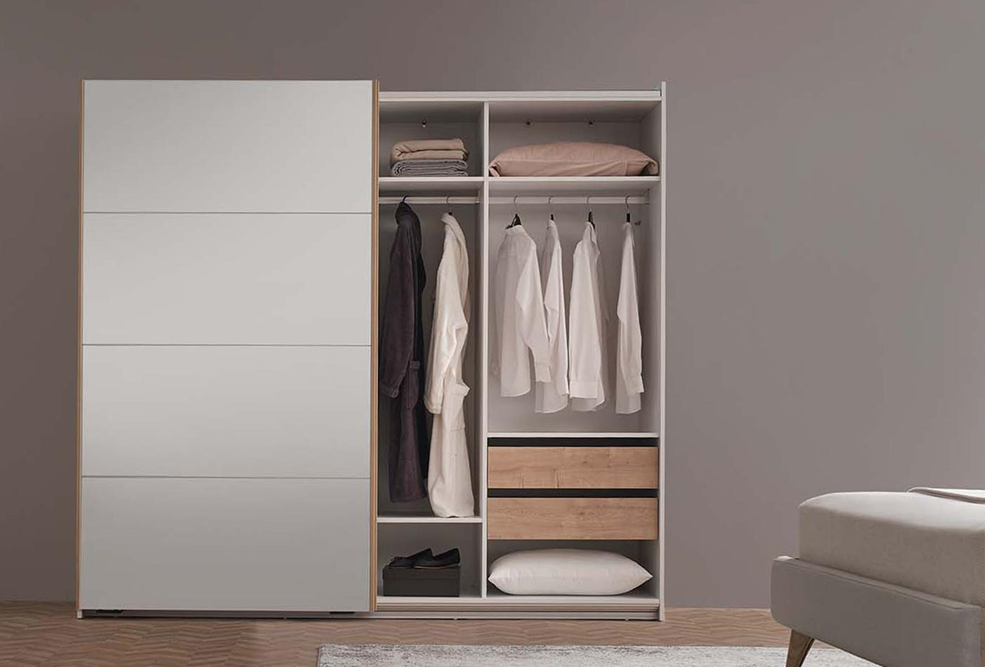 Благодарение на специалния си механизъм позволява безшумното и меко използване на скритата система за плъзгане. Този комфорт, подкрепен от бавна панта и система от релси се предлага с модерен стил, отразен в детайли като метални дръжки. Привлича вниманието с двете си чекмеджета и апликацията за панталони.