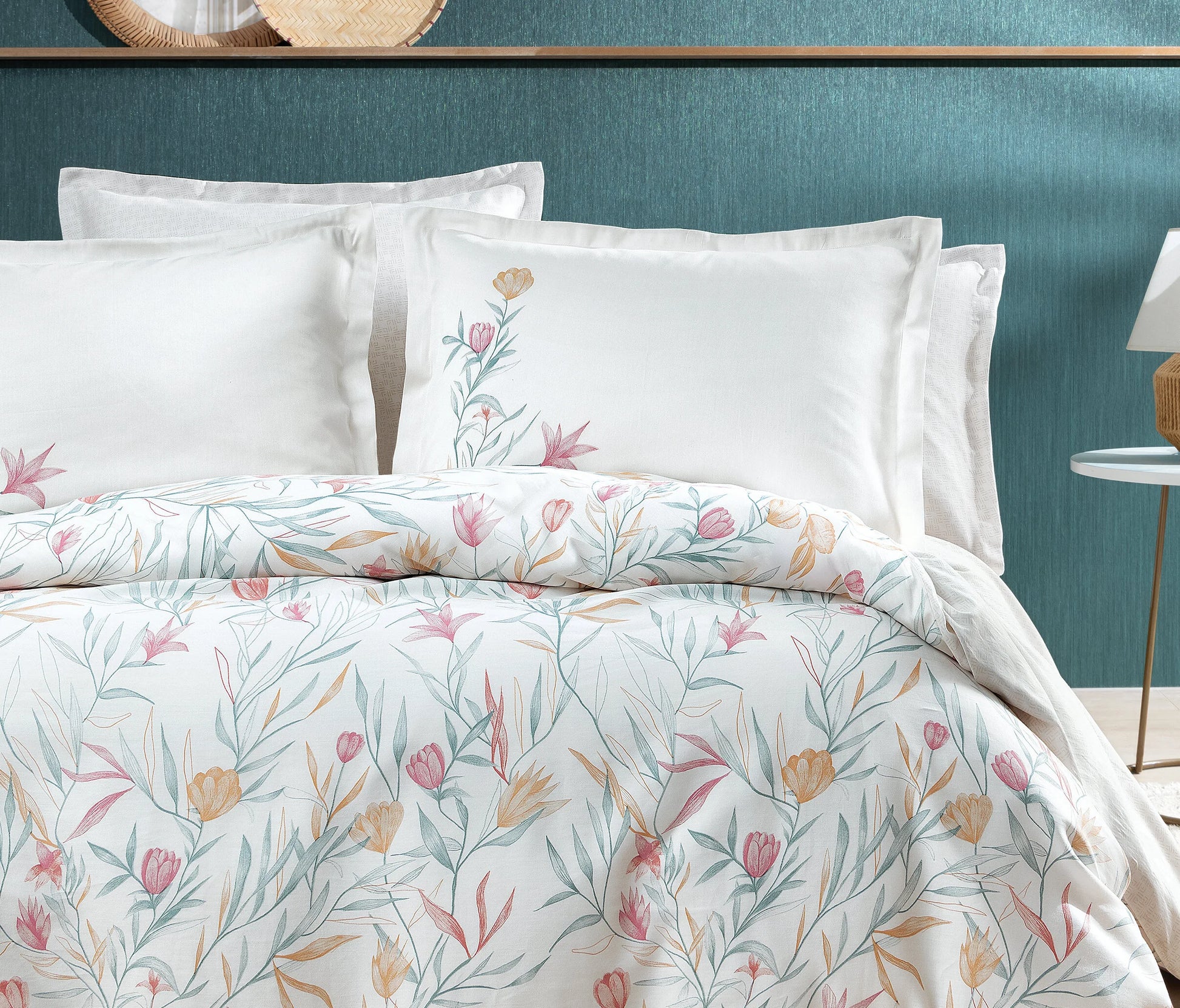 Внася лекото докосване на слънцето в жилищните пространства с елегантни флорални мотиви, вдъхновени от природата.Дишащи естествени влакна, 100% памук, комфортно обгръщат тялото със сладка прохлада, като балансират телесната температура през нощта.