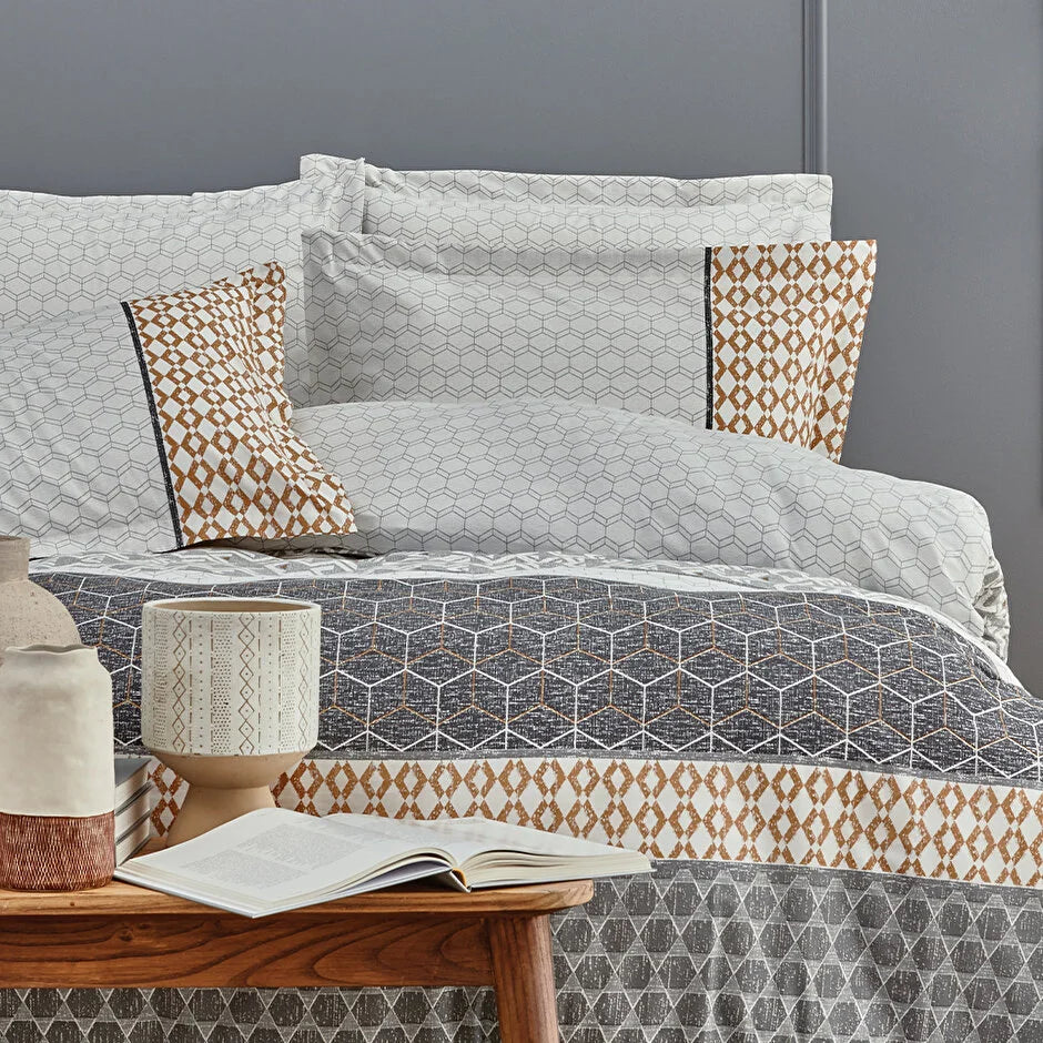Спалният комплект Taren придава на спалнята изискан стил чрез елегантната яркост на цветовете и оригиналния щрих на микродесените. Изработен от 100% памук, той предлага удобство и високо ниво на комфорт.