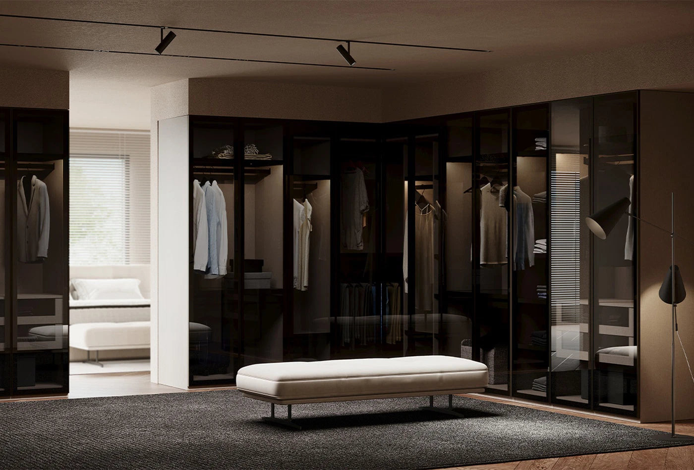 Гардеробната система Odena съчетава елегантен и функционален дизайн, като предлага решения за всяка нужда чрез персонализируеми вътрешни конфигурации, реализирани благодарение на отличителните детайли на Enza.