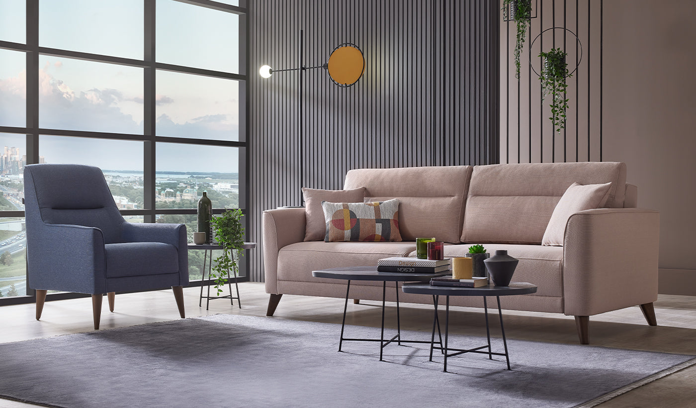 Изчистени, прави форми, отразяващи естетиката и красотата на модерните, прави линии. Модела съчетава в себе си комфорт, стил и практичност. Положените в него различни слоеве пълнеж от различна по плътност пяна допринасят за мекото усещане. Визията му е перфектно допълнена с високи крачета, за по-лесно почистване. Краката могат да бъдат в цвят орех или антрацит.