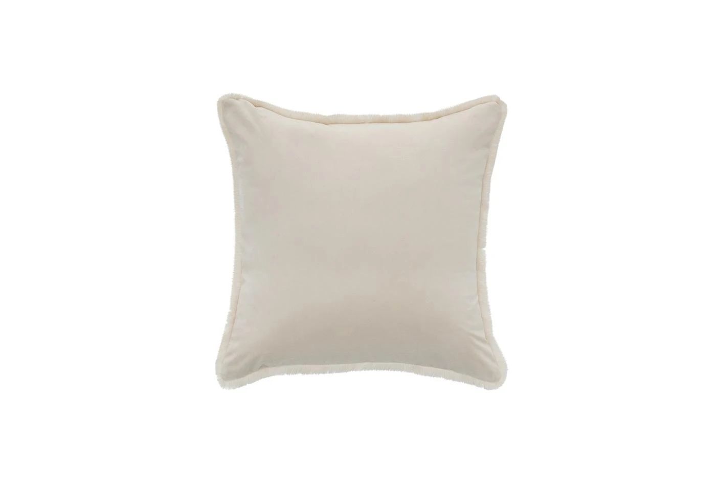 Декоративна възглавница Donna, добавя комфортно и луксозно докосване на жилищните пространства с меката повърхност и лъскавия вид на кадифената тъкан, в комбинация с изчистен дизайн и детайли с пискюли.