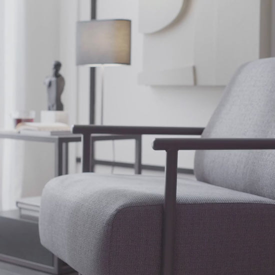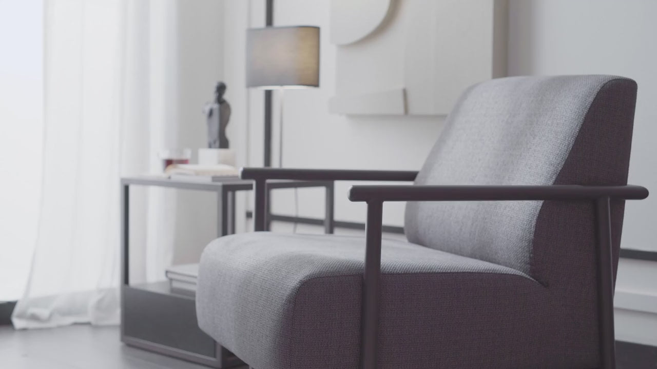 Със стройна и изискана линия в модерен стил, креслото се откроява с използването на метални детайли, които създават стилен и мощен ефект в декорацията. Предлага съвременен дизайн с използването на метални крака и подлакътници, както и по-удобно изживяване при сядане с пълнеж от пера в облегалката.