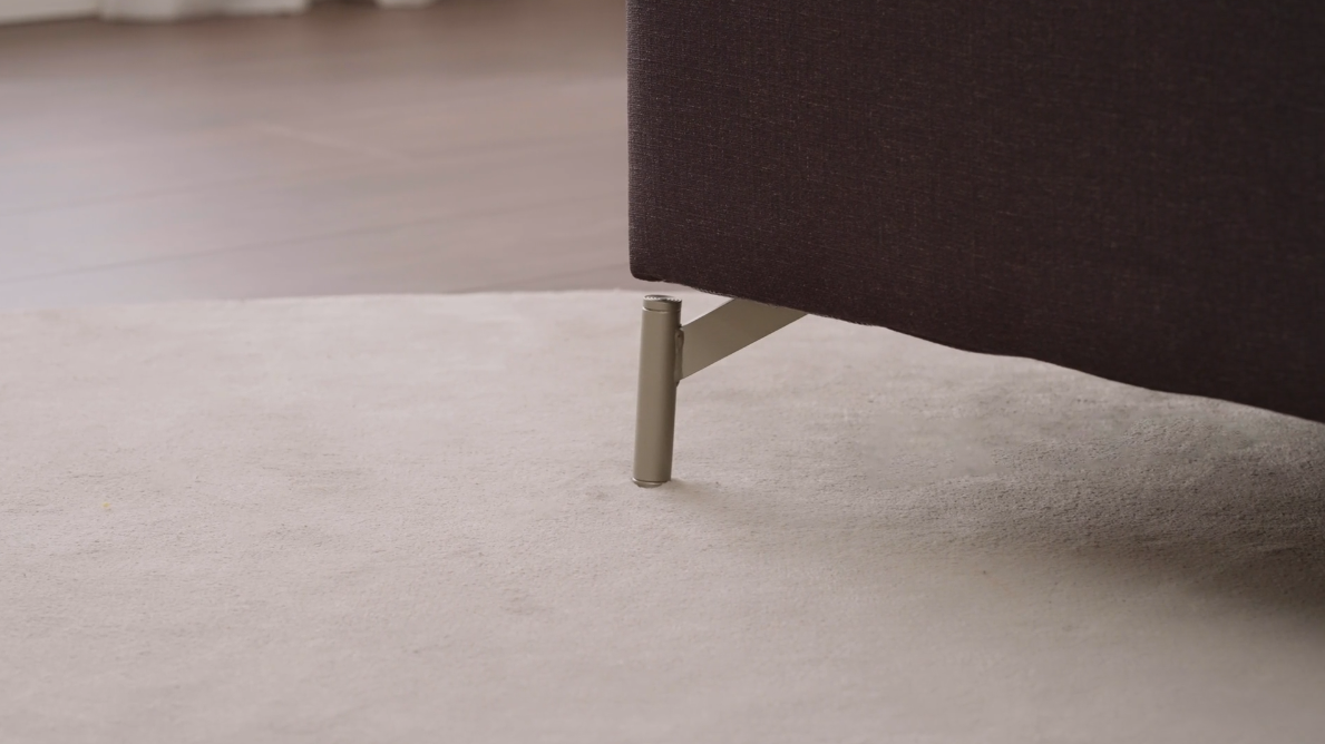 Модерен вид в цвят орех с дървесна текстура и линейни детайли, който подчертава естествеността, в комбинация с метални крака в цвят полиран инокс.