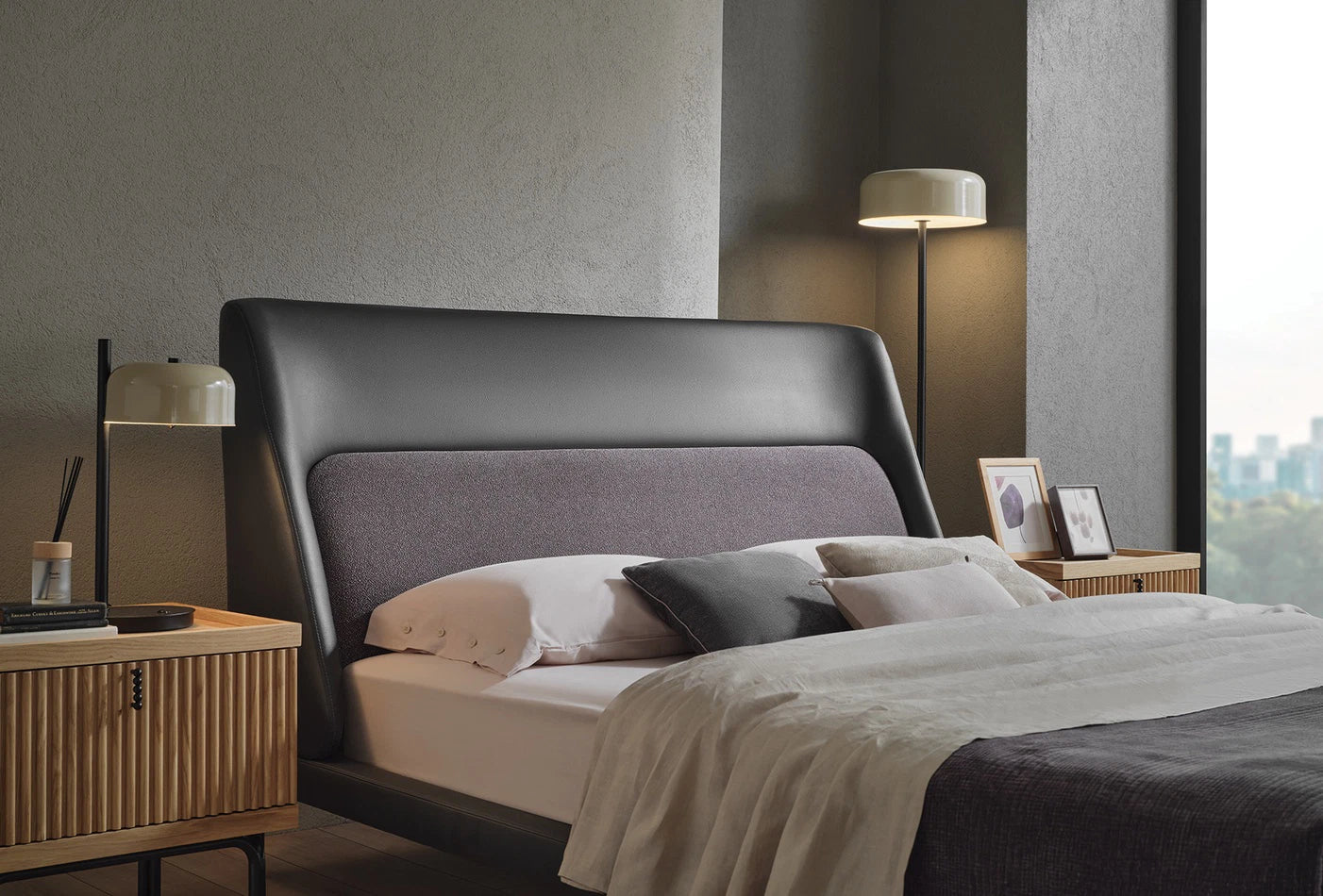 Обогатява жилищното ви пространство с дизайна си, който предлага комфорт и естетика заедно. Има привлекателен външен вид благодарение използването на две различни материи върху таблата.