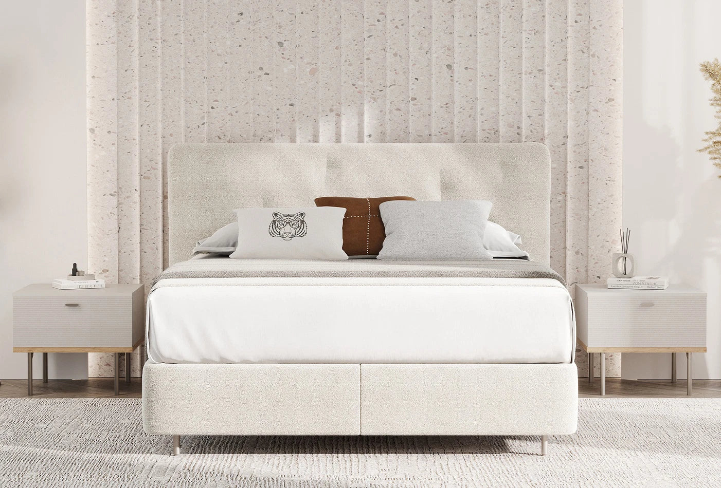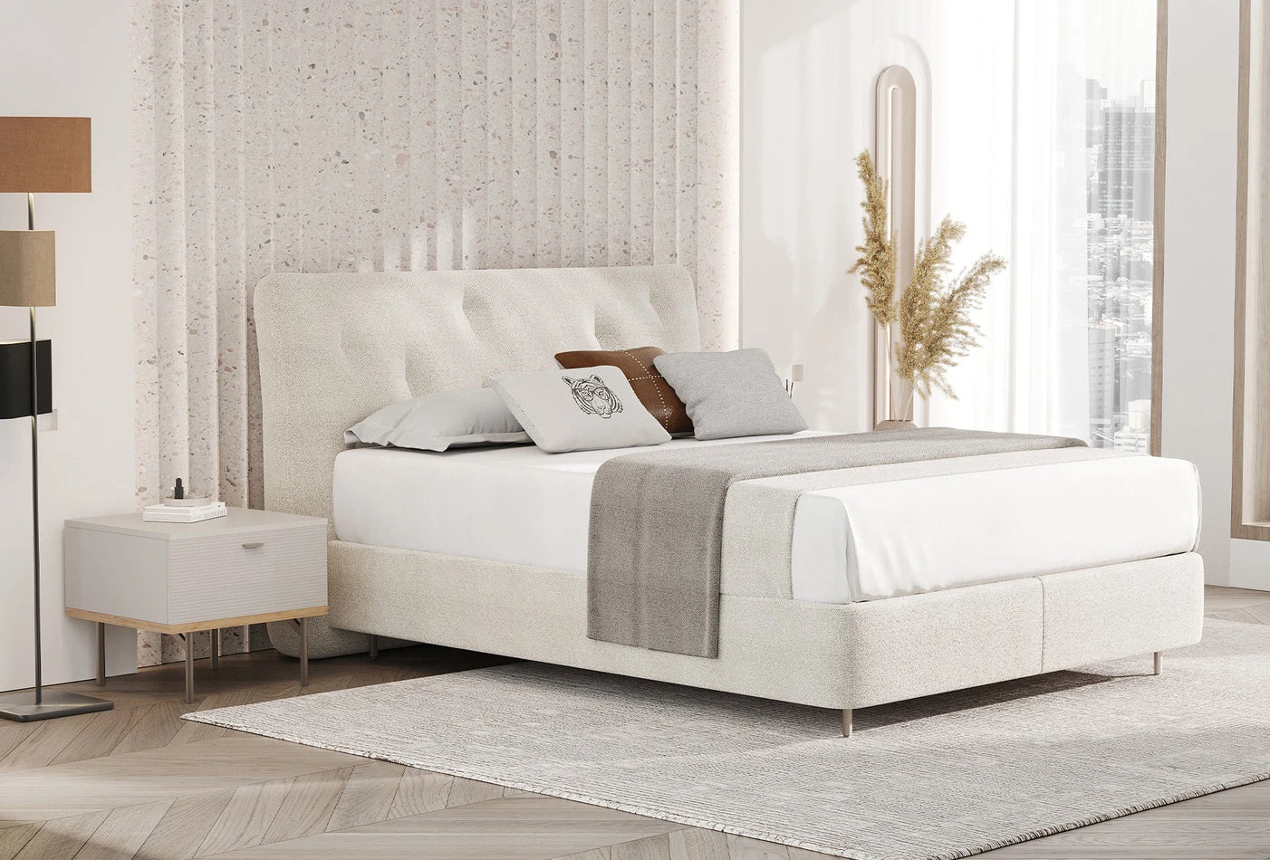 Придава елегантна атмосфера на спалнята ви с изтеглящите се детайли на таблата. Металните крака добавят модерно докосване към дизайна и издръжливост заедно.