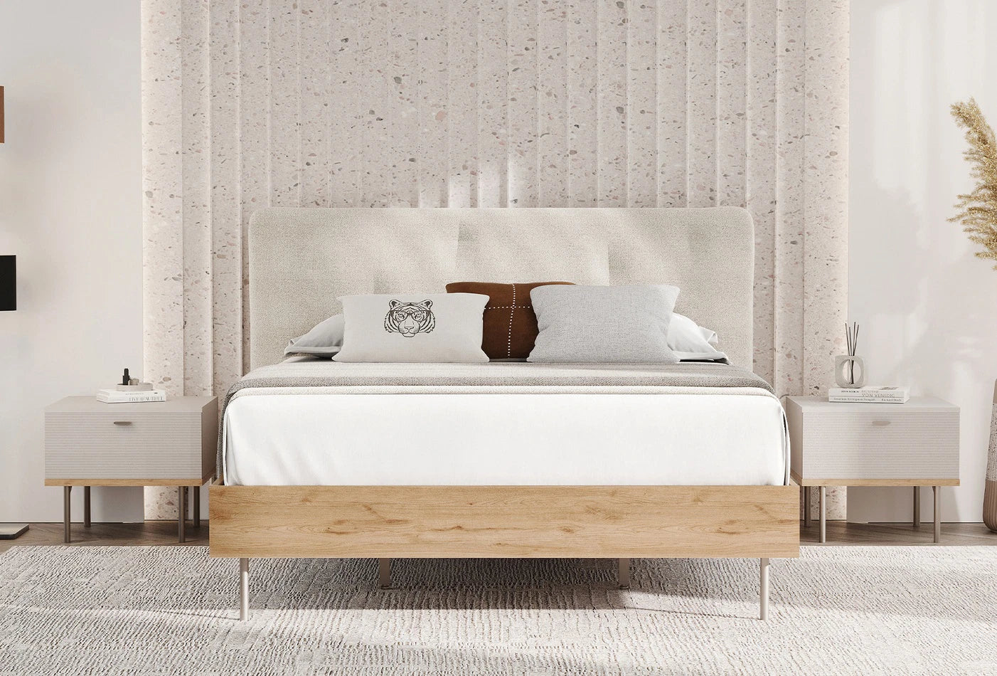 Придава елегантна атмосфера на спалнята ви с изтеглящите се детайли на таблата. Металните крака добавят модерно докосване към дизайна и издръжливост заедно.