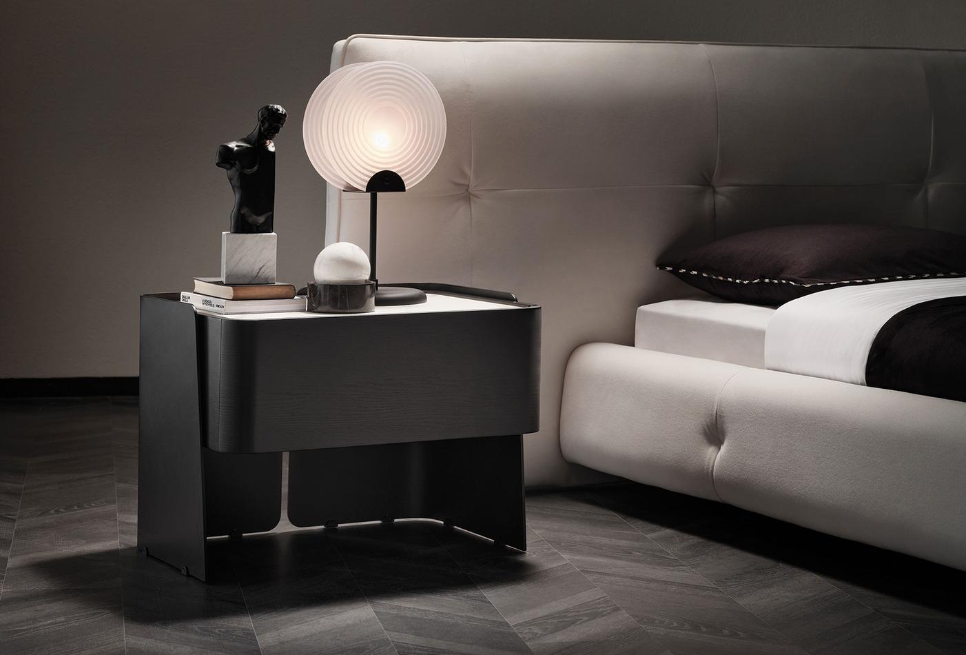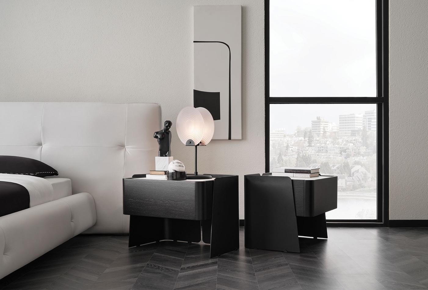 Asmara принадлежи към серията Visions 2024, предлага елегантен дизайн, оборудван с квалифицирани детайли. Докато горната част създава луксозна атмосфера със своето керамично покритие, наподобяващо мрамор, корпусът от черен цвят естествен фурнир върху МДФ допълва нощното шкафче с естетичен и стилен вид. Металните и черни крачета, допълващи серията, придават еклектичен чар на мебелите, а богатата комбинация от материали и устойчивата на надраскване и счупване горна повърхност предлагат дълготрайна и функционална употреба.