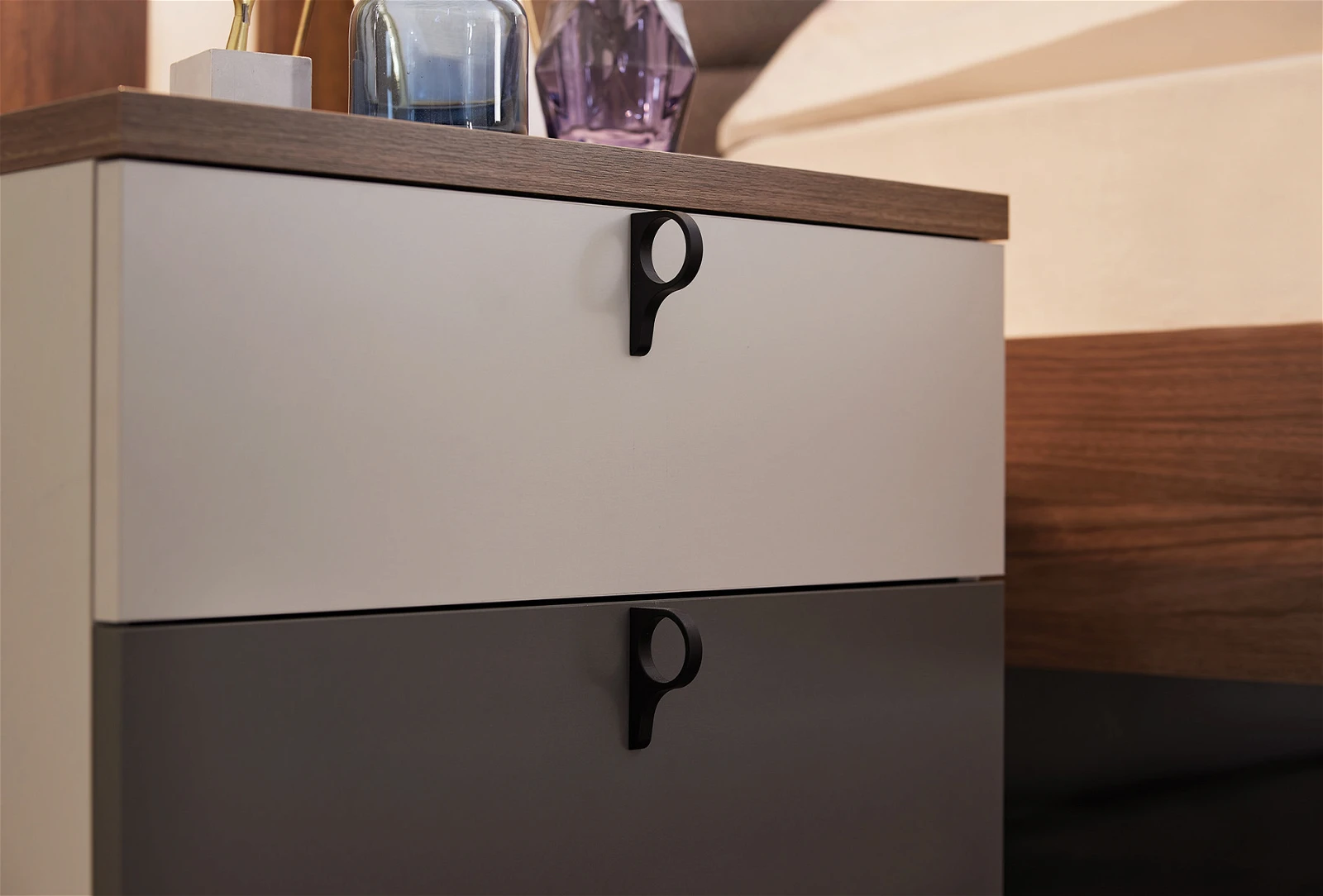 Отличаващ се с меки цветови преходи е подходящ избор за съвременен дизайн. Успява да отрази спокойната и елегантна линия със своята цветова комбинация от орех, сиво и крем.