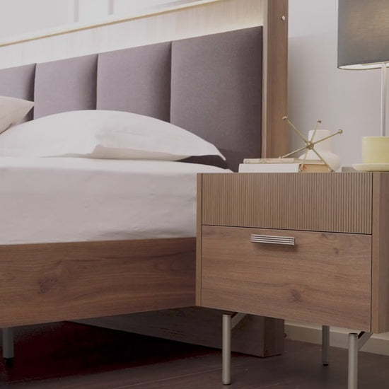 • Предлага топъл орехов цвят с дълбока дървесна текстура, където естествеността е на преден план с модерен вид на дърво и геометрични конструкции