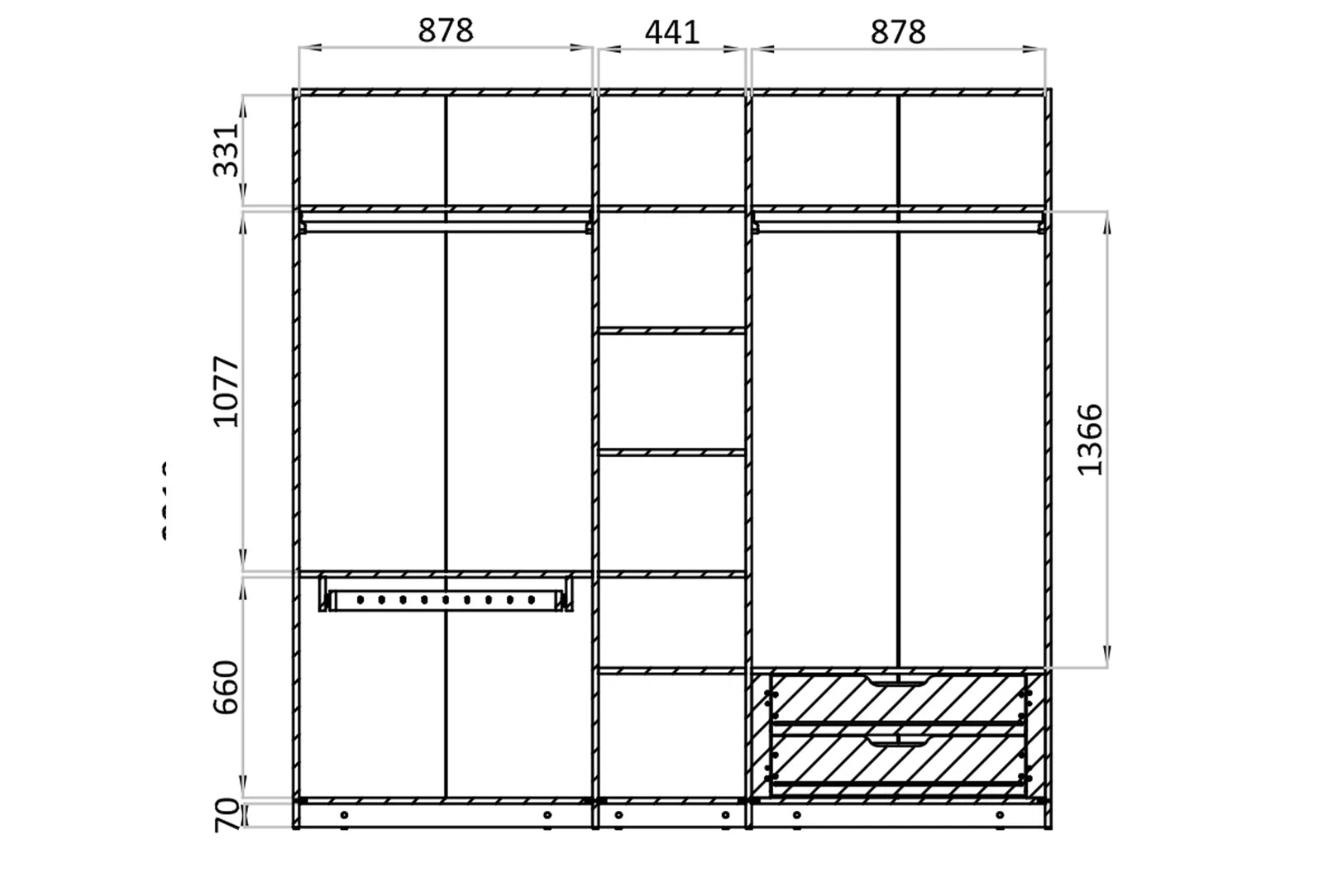 Гардероб HERA представлява идеалния синтез между елегантност и функционалност. Успокояващият камъчен нюанс на корпуса се хармонира перфектно с естествените огледални детайли, а луксозните метални дръжки в бронзов цвятдобавят съвременна изтънченост.