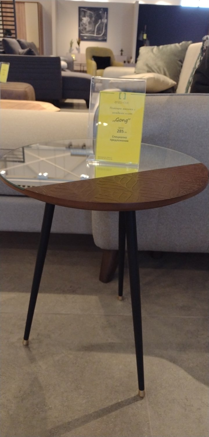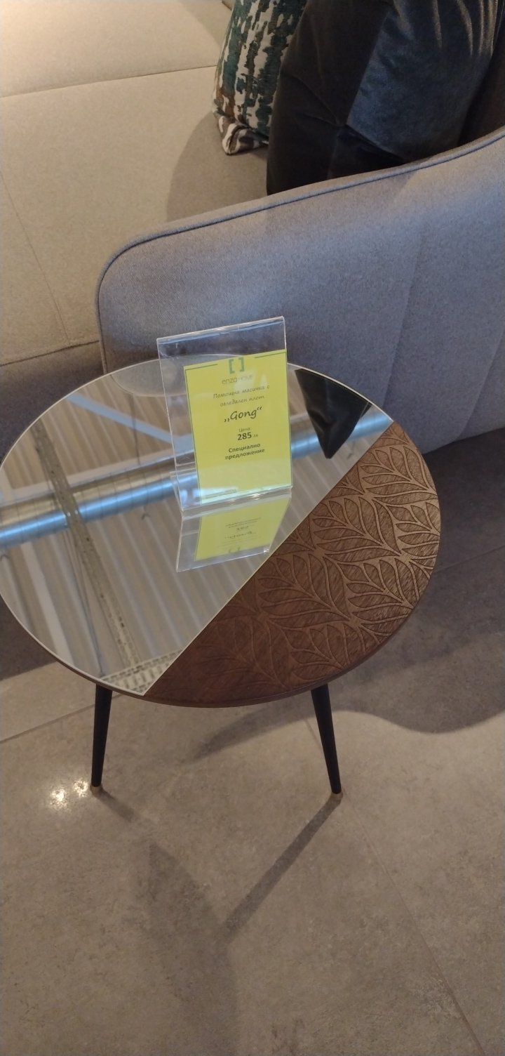 Естествен дървен фурнир върху MDF - цвят орех в кръгла форма със специален огледален дизайн.