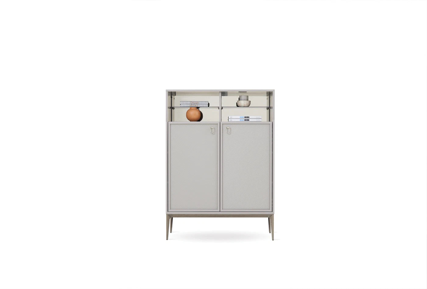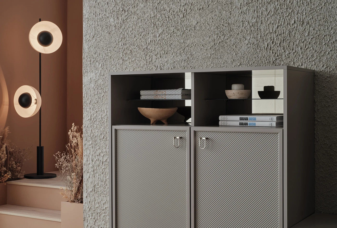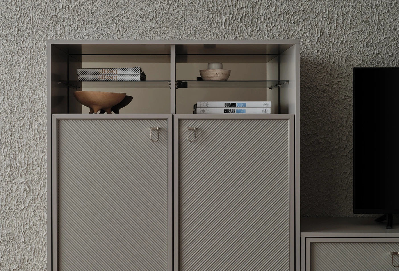 Страничният модул HERA умело съчета елегантност и функционалност в едно. Съвременният му дизайн, изпълнен със стъклени рафтове и натурални детайли с огледална повърхност, придава на всяко пространство чувство за лекота и широта.