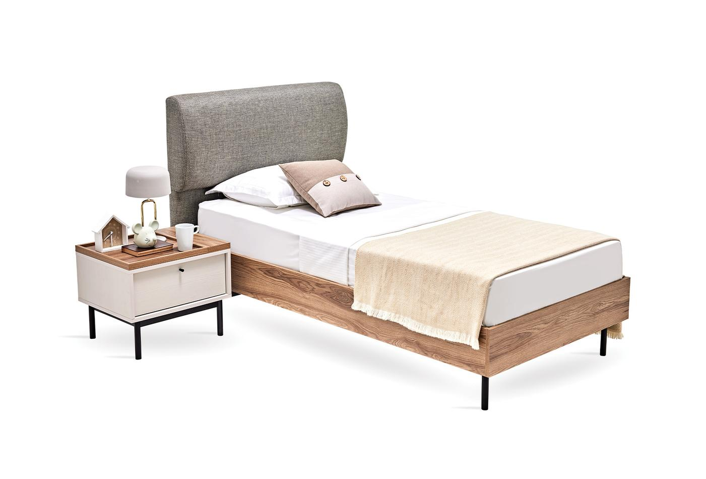 Таблата покрита с плат дава приоритет на комфорта, като в същото време създава разлика в спалните със своя модерен стил.