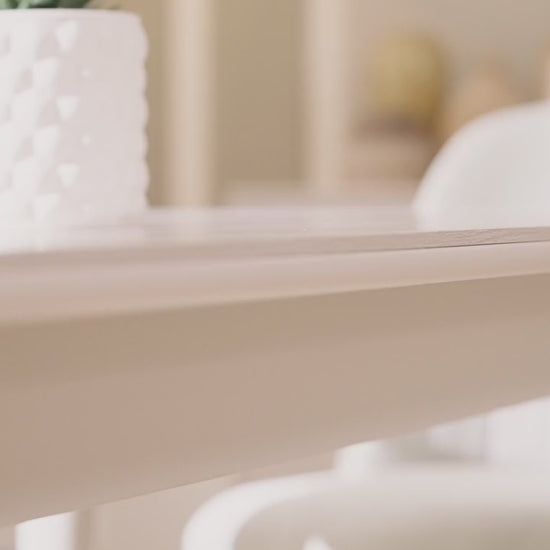 Добавя ярък и елегантен стил към пространството, благодарение на дървените си крака, които допълват комбинацията от светъл дъб и светло бежово.Подчертава стила на жилищните пространства с ненатрапчив стил, като привлича вниманието с полезната си площ. Капацитет за 8 човека