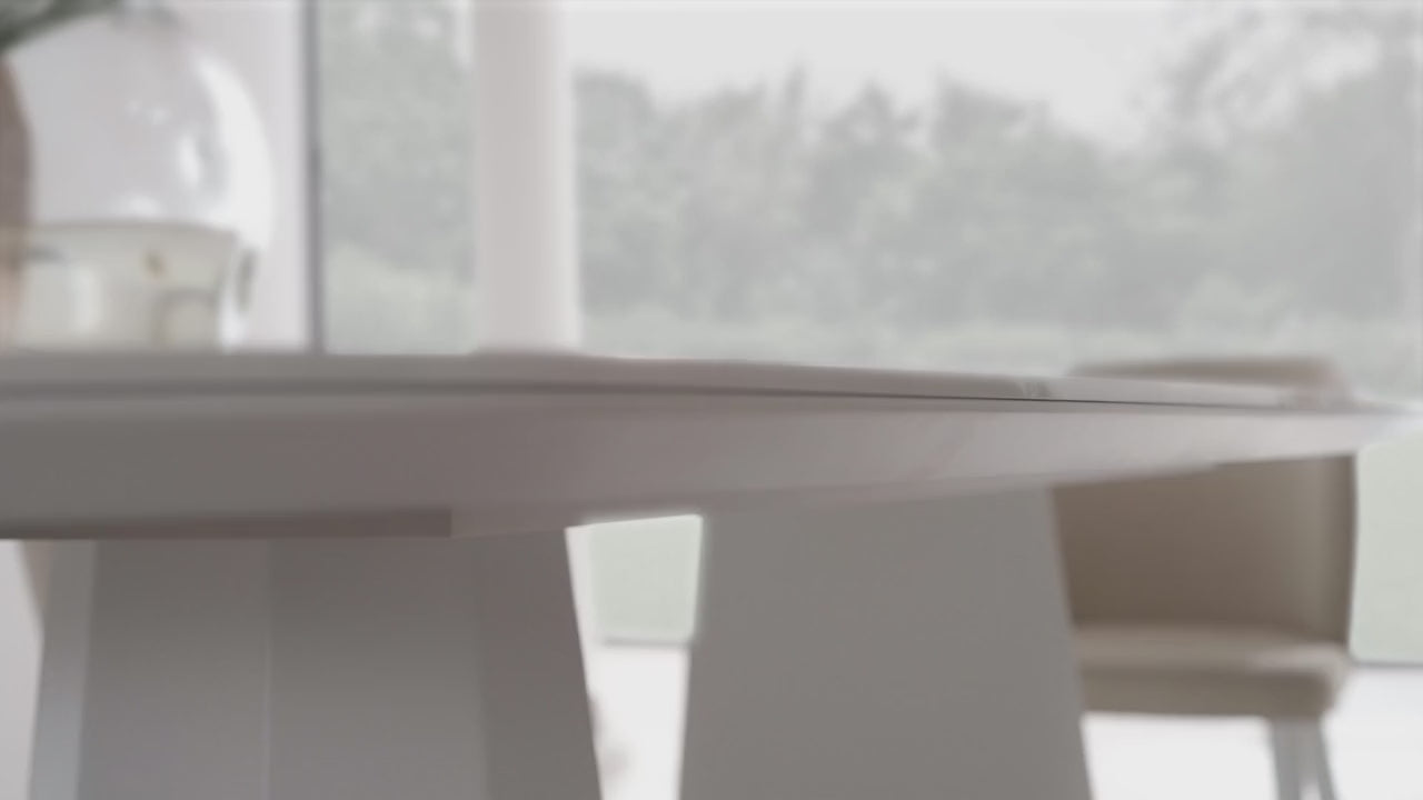 Откроява се със своите млади, динамични и модерни дизайнерски характеристики. Отразява монохромния стил към различни концепции за декорация. Позволява създаването на стилни и удобни пространства със своите скулптурни крака от метал и апликация на мраморна повърхност. Предлагайки капацитет за сядане от 8 души.