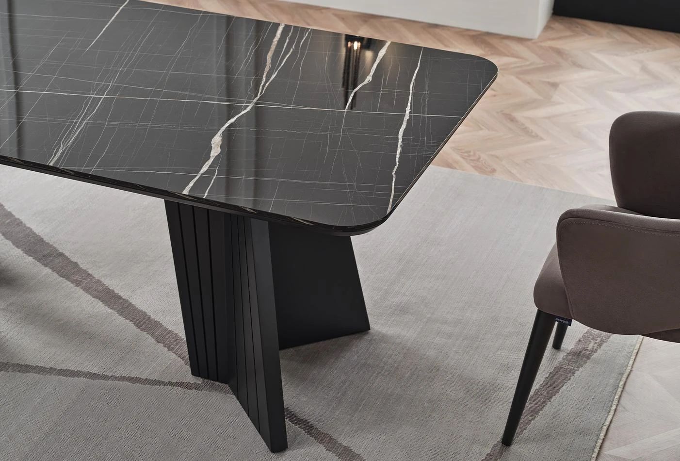Предлага съвременен и луксозен външен вид, който отразява уникален контраст със своята лъскава повърхност и матови крака. Неговата естественост с черни матови дървени крака, използвани в дизайна му извежда модерността на преден план със своята подобна на мрамор горна повърхност, успява да отрази два различни стила като цяло.