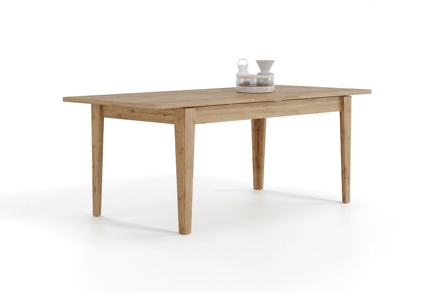 Вписва се във всяко пространство с елегантния си и функционален дизайн. Цветовата комбинация от естествен дъб и бежово създава топло усещане, като същевременно създава модерна атмосфера. Дървените крака подсилват естетическата цялост на масата и придават характер на интериора.