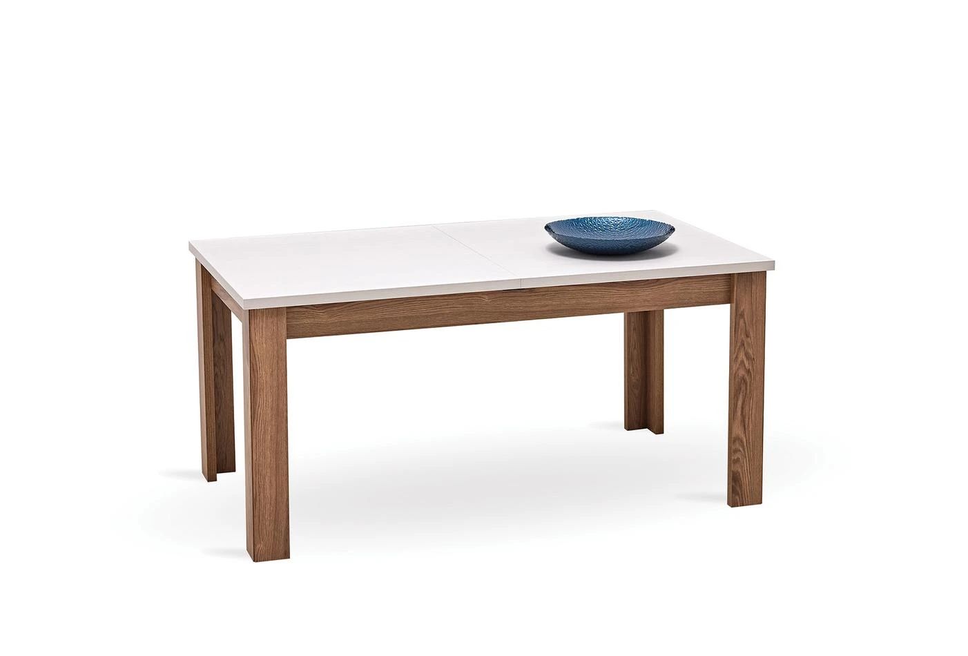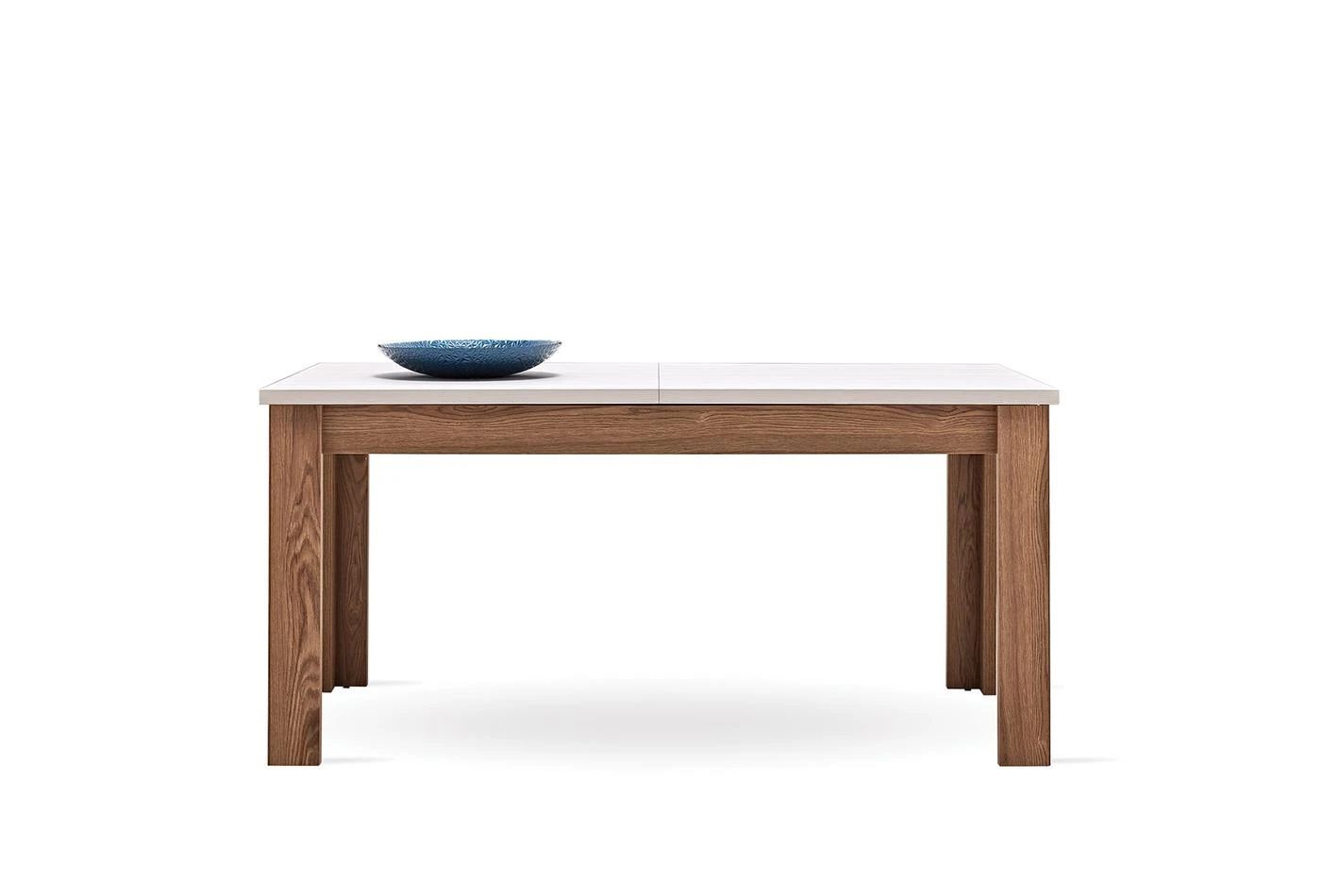 Разтегателната трапезна маса от серията допълва жилищните пространства със своя модерен индустриален стил. Характеристиките, които представят колекцията се съчетават със стилни детайли. Неговата структура, подходяща за различни комбинации, капацитет 6/8 места и идеални размери ви позволяват да посрещнете гостите си по възможно най-добрия начин. Комбинация от цветове - крем и орех.