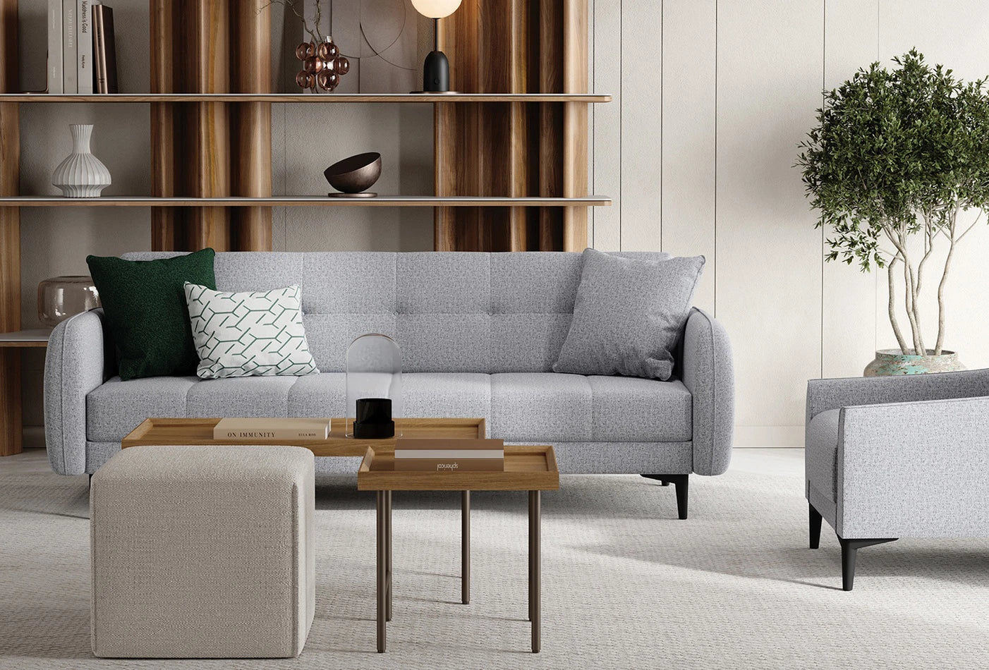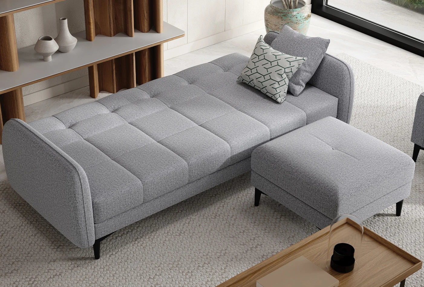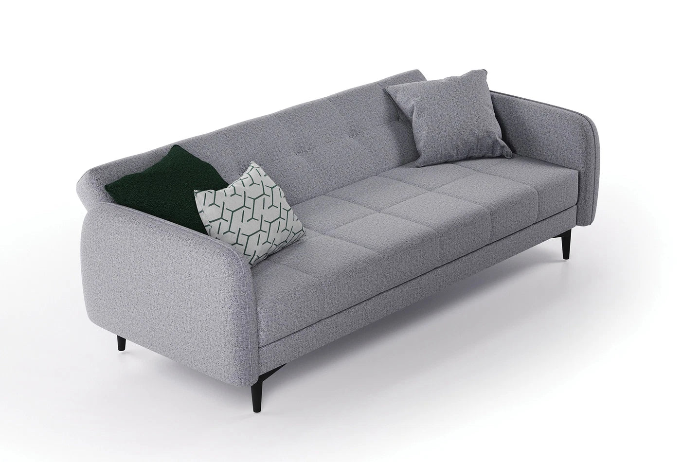 Триместният разтегателен диван Romina впечатлява с модерен дизайн и практичност. Включва три декоративни възглавници и осигурява дълготраен комфорт. Благодарение на лесната за почистване дамаска и високите крака, почистването е бързо и удобно. Със стилния си външен вид Romina добавя едновременно уют и елегантност във вашия дом.