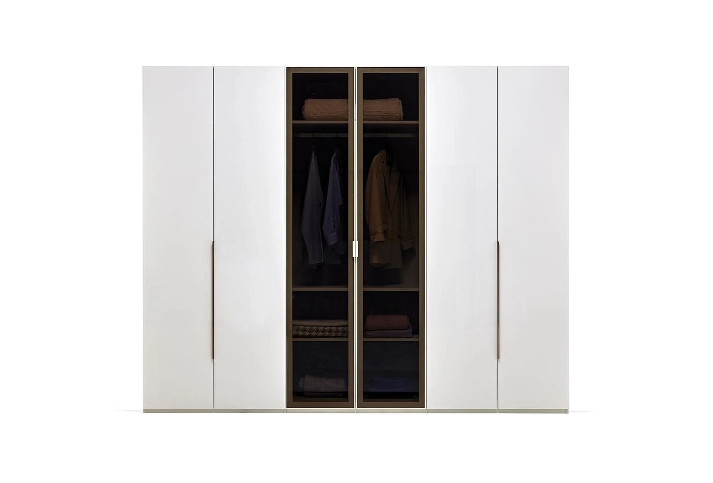 Подчертавайки монохромния стил, който често се предпочита в декорацията на дома, подчертава елегантността с дългите си лъскави дръжки от опушен метал и бяла лъскава повърхност и обещава функционална употреба с големите си места за съхранение. Внесена система на панти със самозабавяне. Врати тип акордеон.