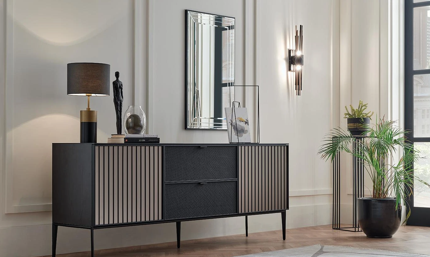 · Апликация на черна профилна рамка на 2 броя чекмеджета и врати