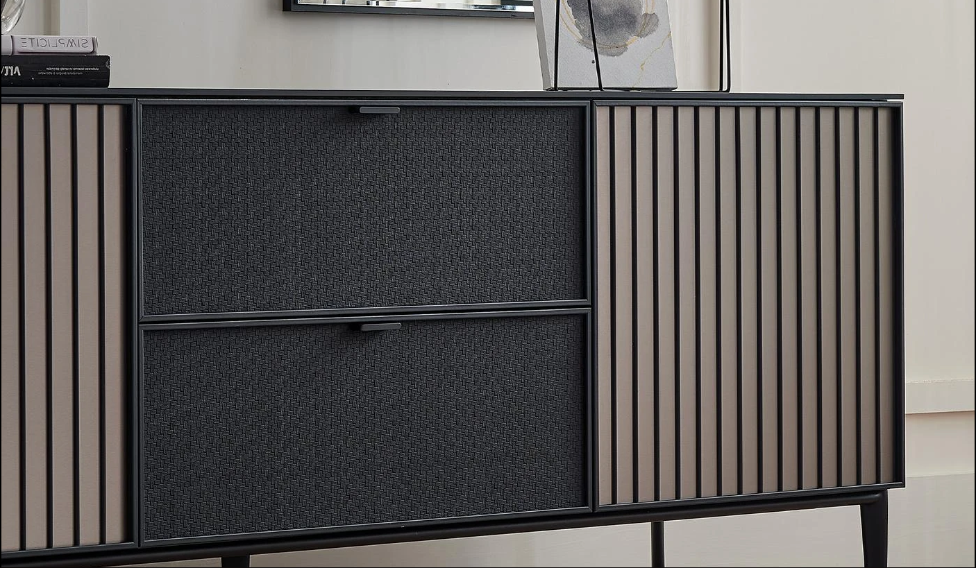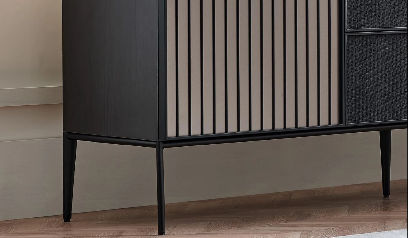 · Специално приложение с изглед на черна кожа върху повърхностите на чекмеджетата