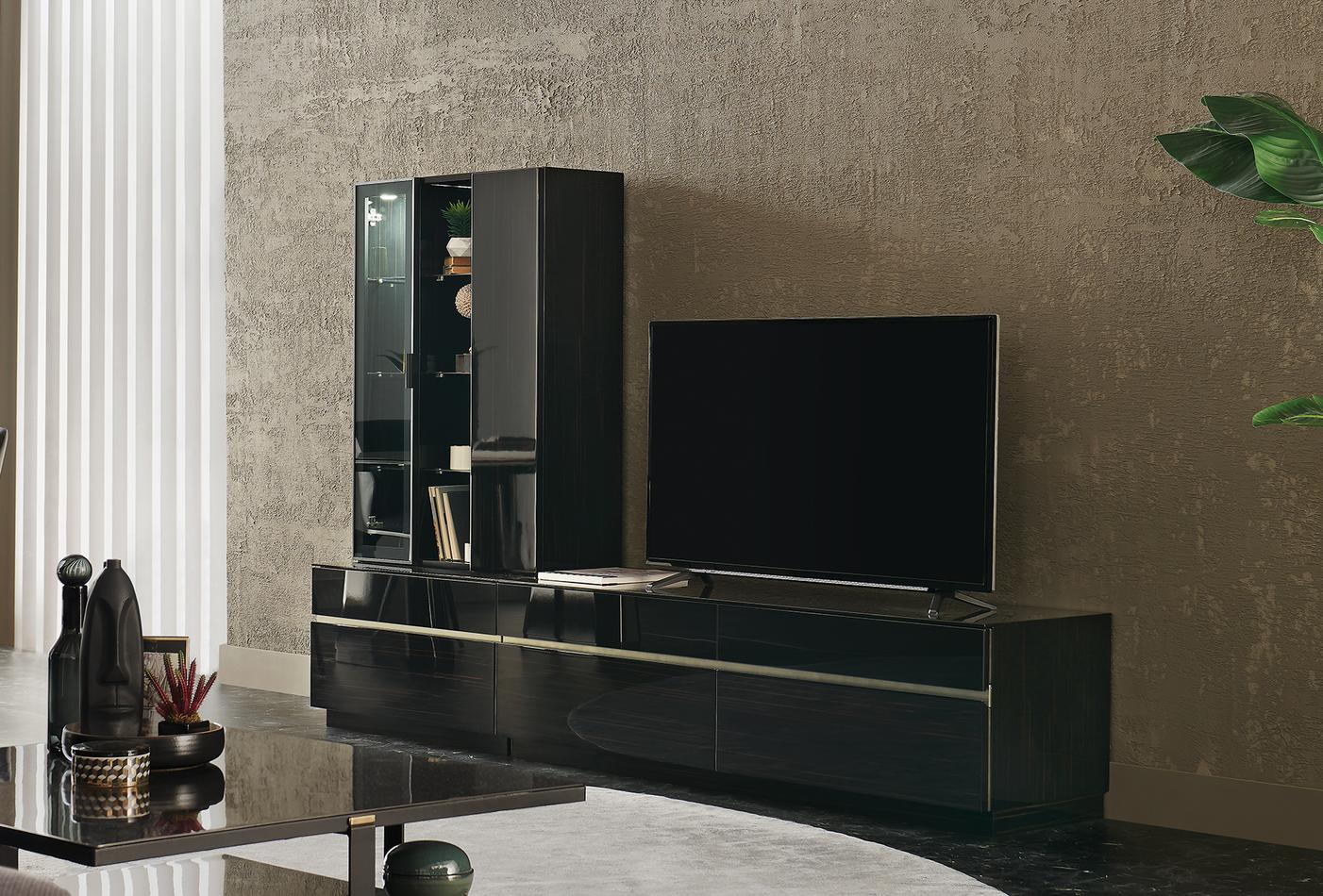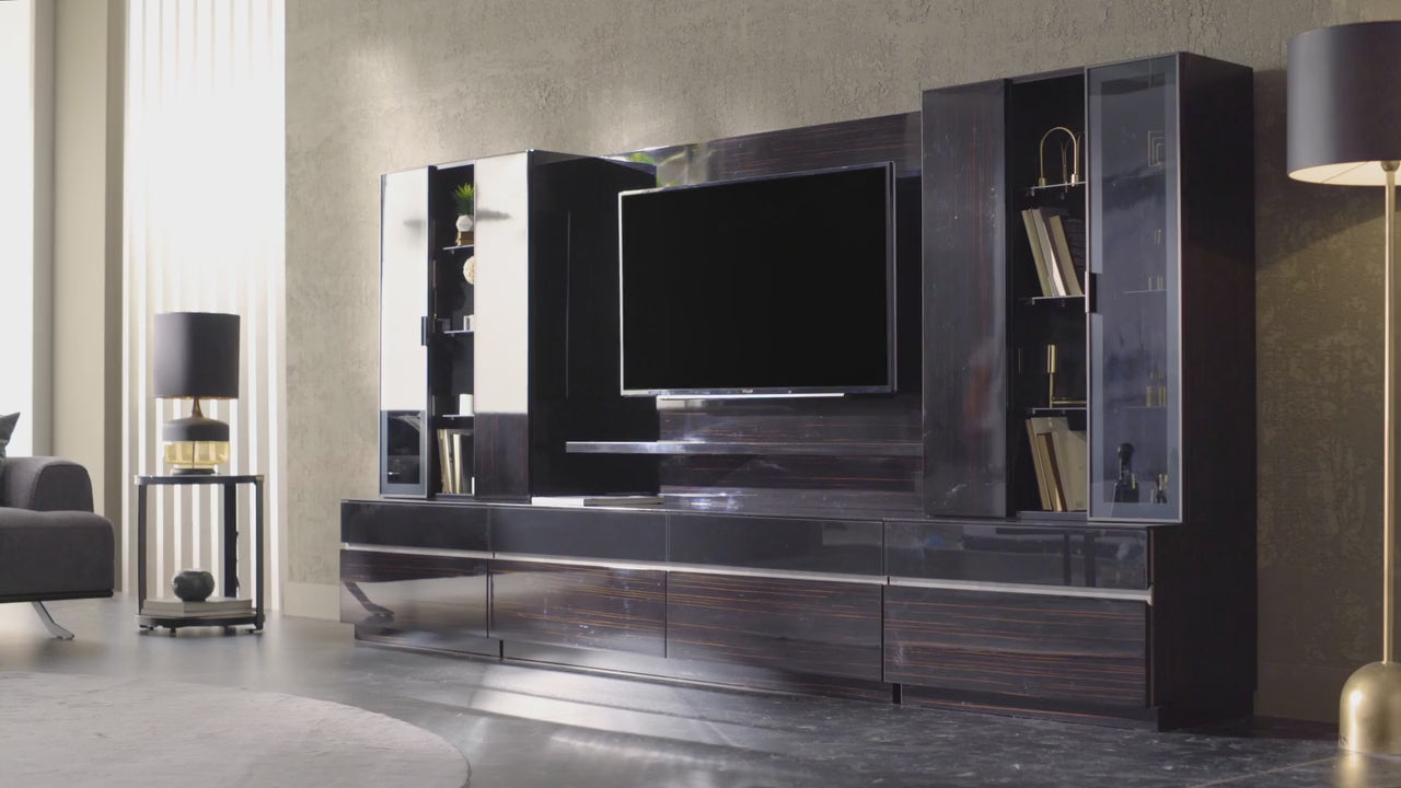Предлага практична употреба, която ще се хареса на всичките ви нужди с тройното си отделение и четириетажен рафтов дизайн. Модулът, който е създаден с помощта на цвят абанос, специфичен за серията, показва качествена позиция със своята структура. Добавя различна атмосфера към вашия дом със своя дизайн от стъкло и дърво.