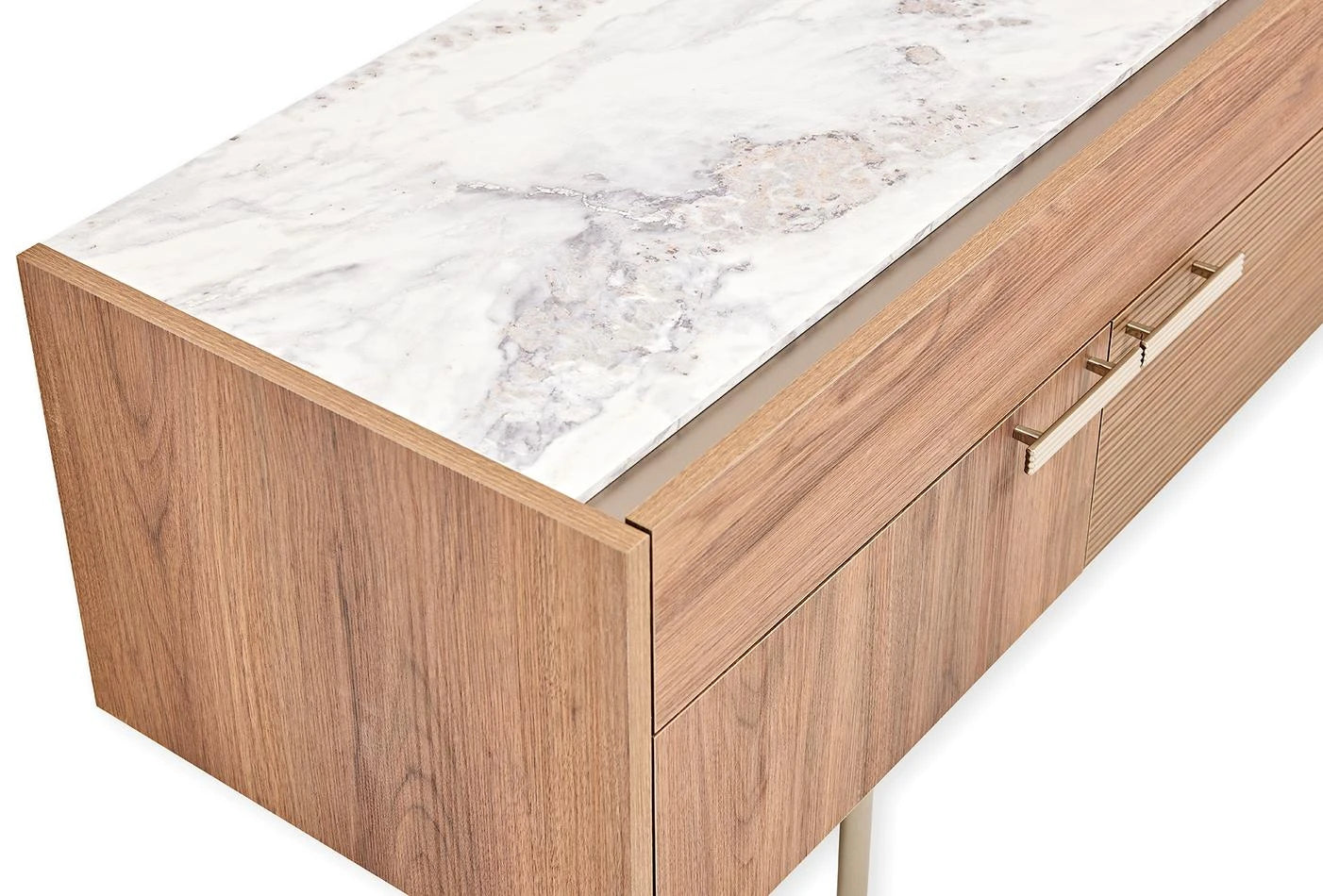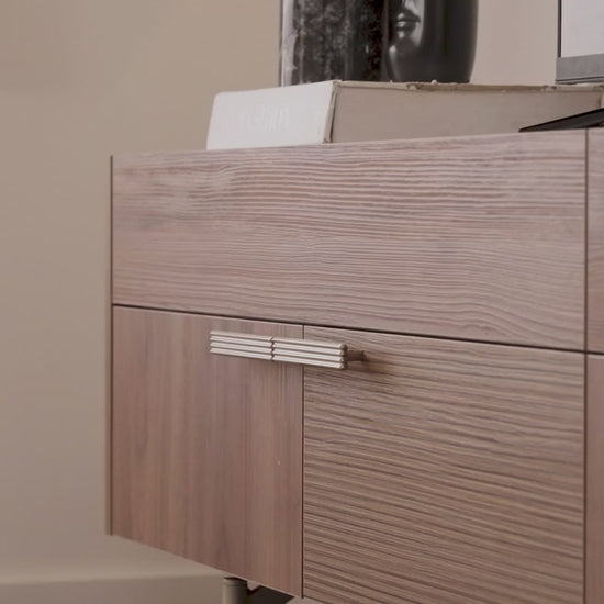 - Метална дръжка и дизайн на краката в цвят полиран инокс, който допълва колекцията.