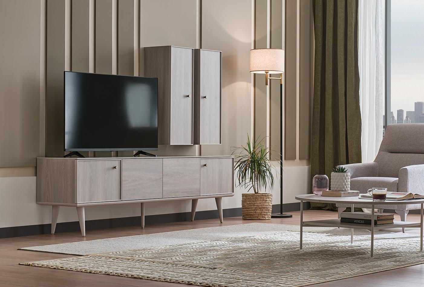 Със своя минималистичен дизайн позволява да оцените ефективно жилищните пространства, като същевременно добавя топла атмосфера към околната среда със своя ярък и приятелски стил. Дизайнът на дръжката в цвят метален никел, съвместим с колекцията и цветова комбинация на светъл дъб и бежово, както и използването на отваряне с натискане на средните врати са сред изключителните характеристики.