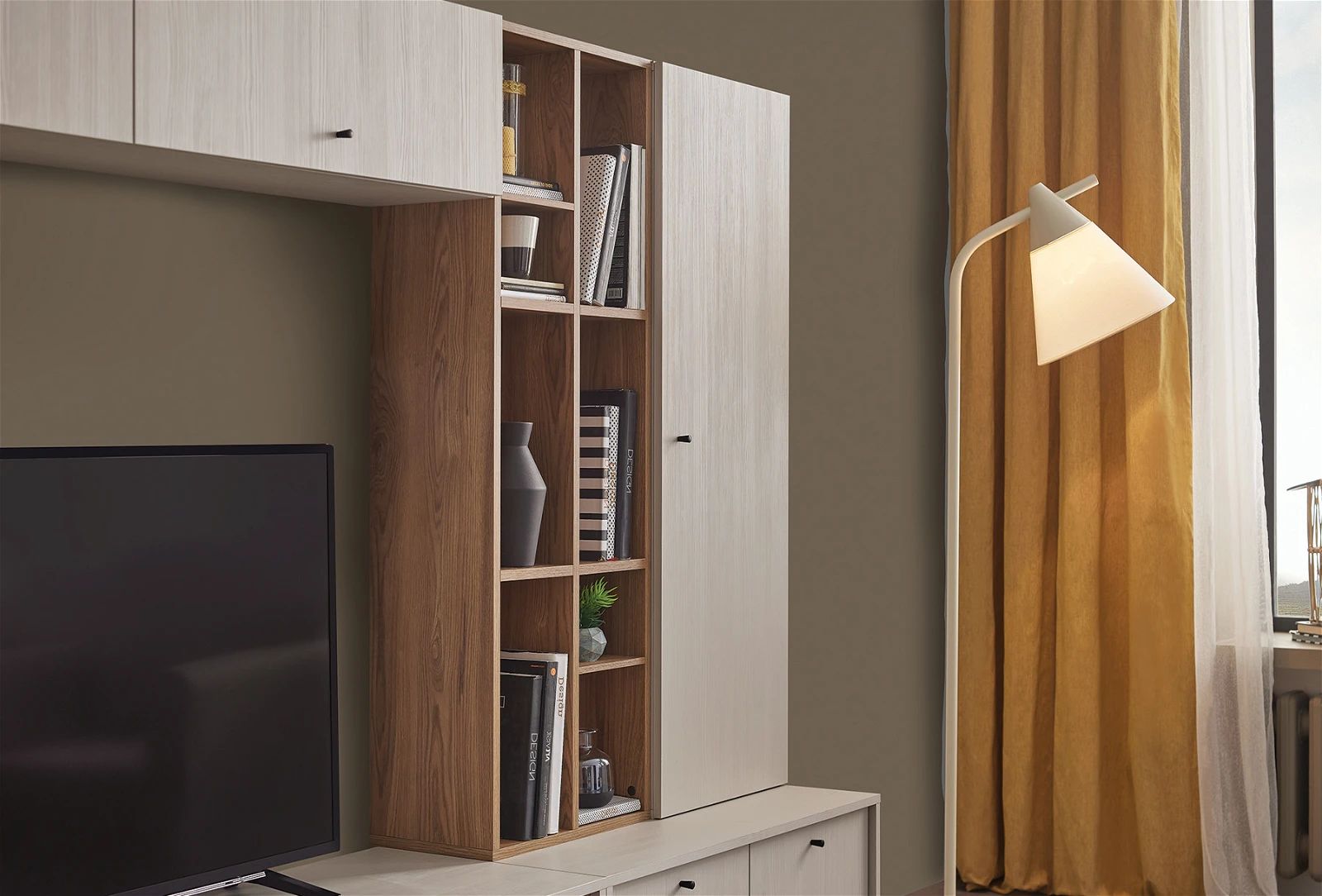 Придава топлина на жилищните помещения със своя цвят светъл орех. Осигурява допълнително място за съхранение с широките си рафтове.